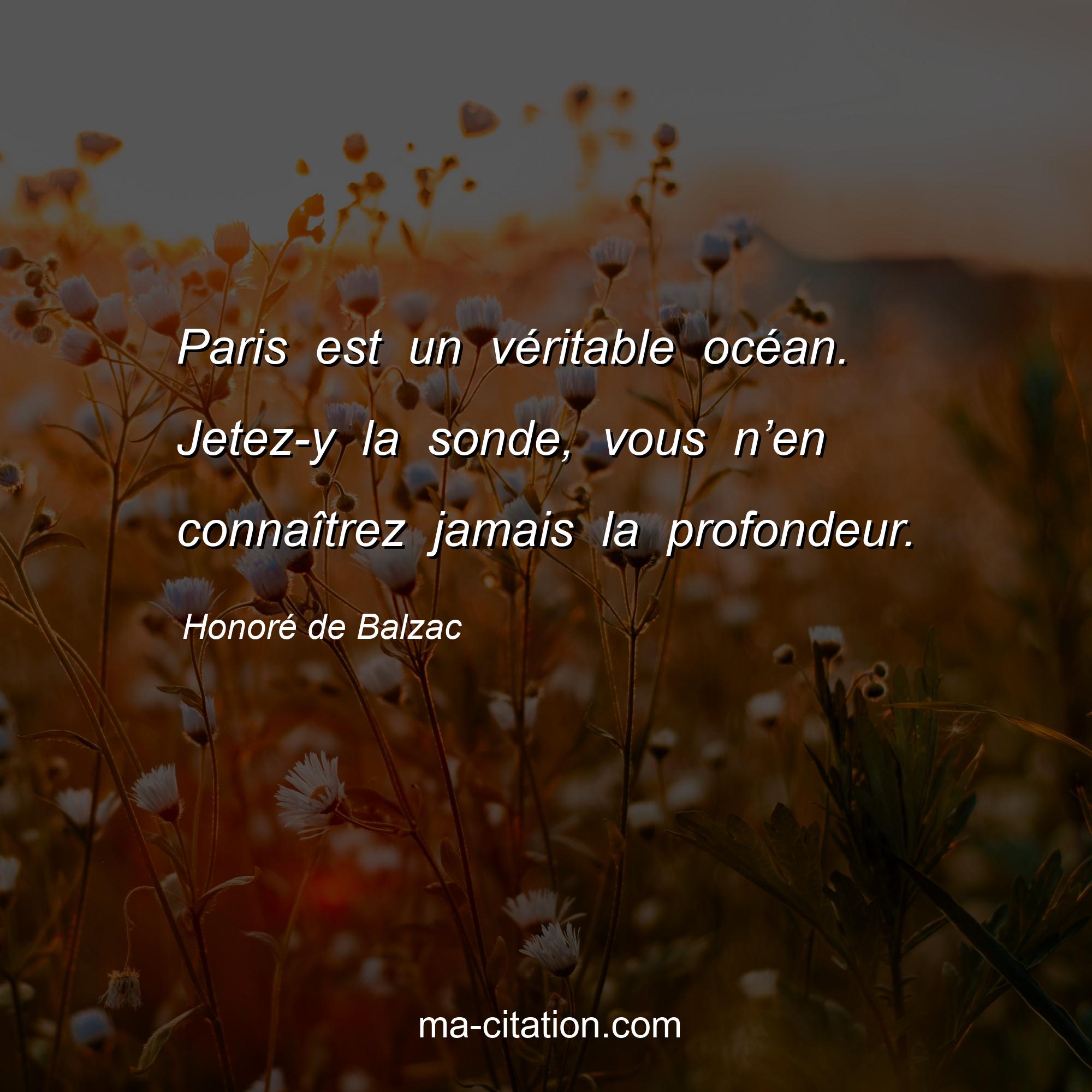 Citation sur la vie de Honoré de Balzac :Paris est un véritable océan. Jetez-y la sonde, vous n’en connaîtrez jamais la profondeur.