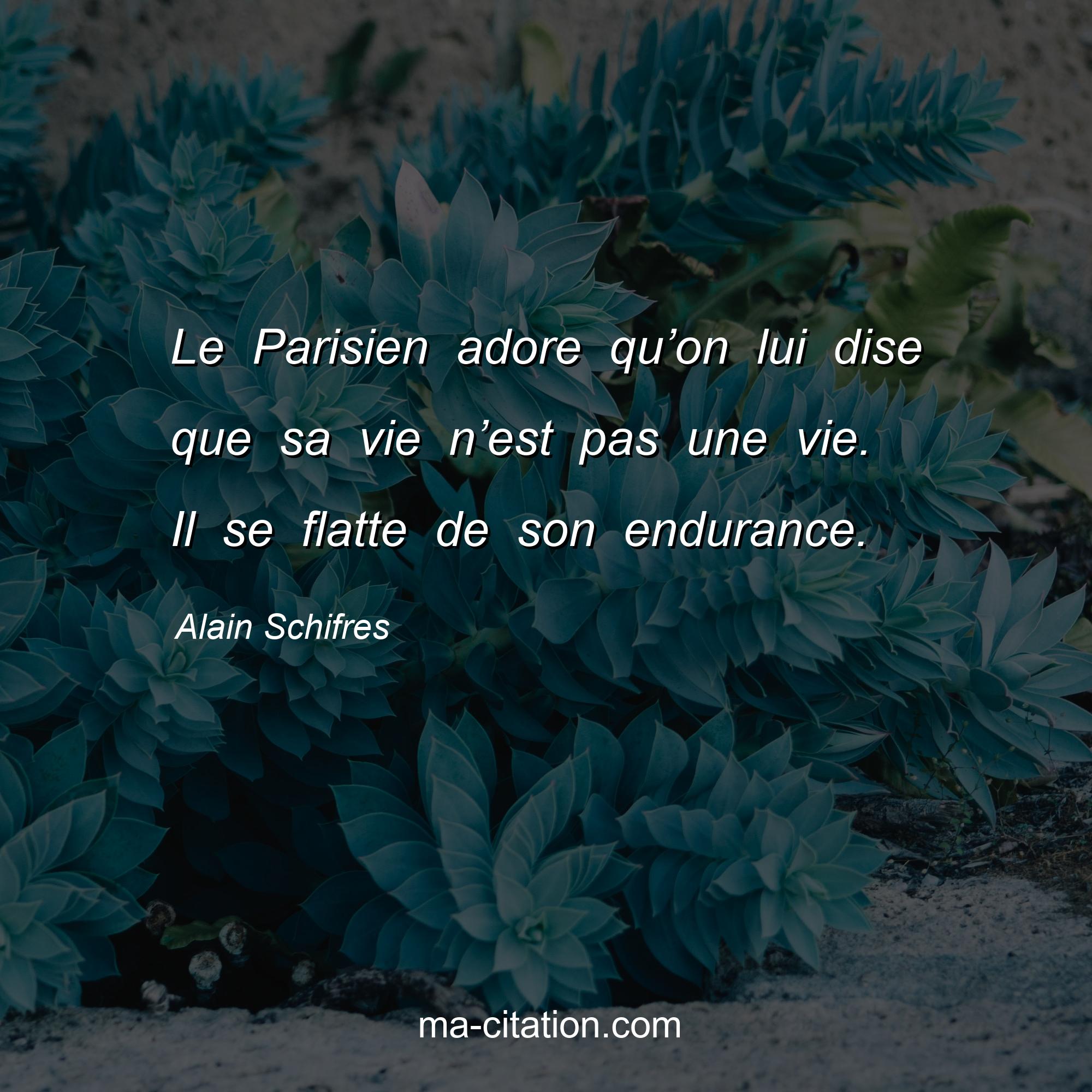 Alain Schifres est l'auteur de la citation sur la vie "Le Parisien adore qu’on lui dise que sa vie n’est pas une vie. Il se flatte de son endurance.".