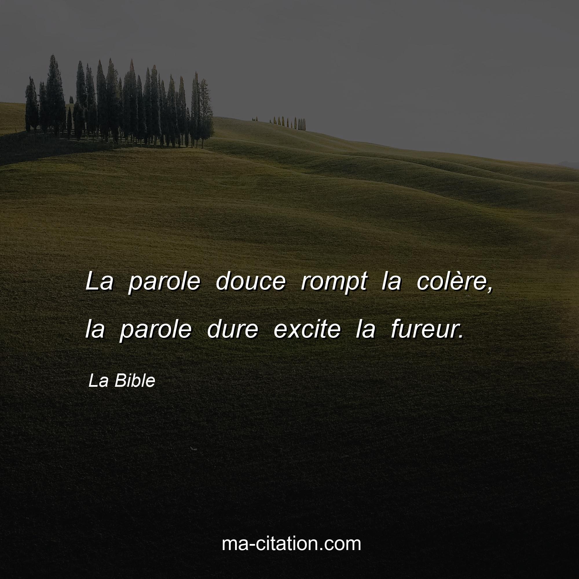 Citation sur la vie de La Bible :La parole douce rompt la colère, la parole dure excite la fureur.