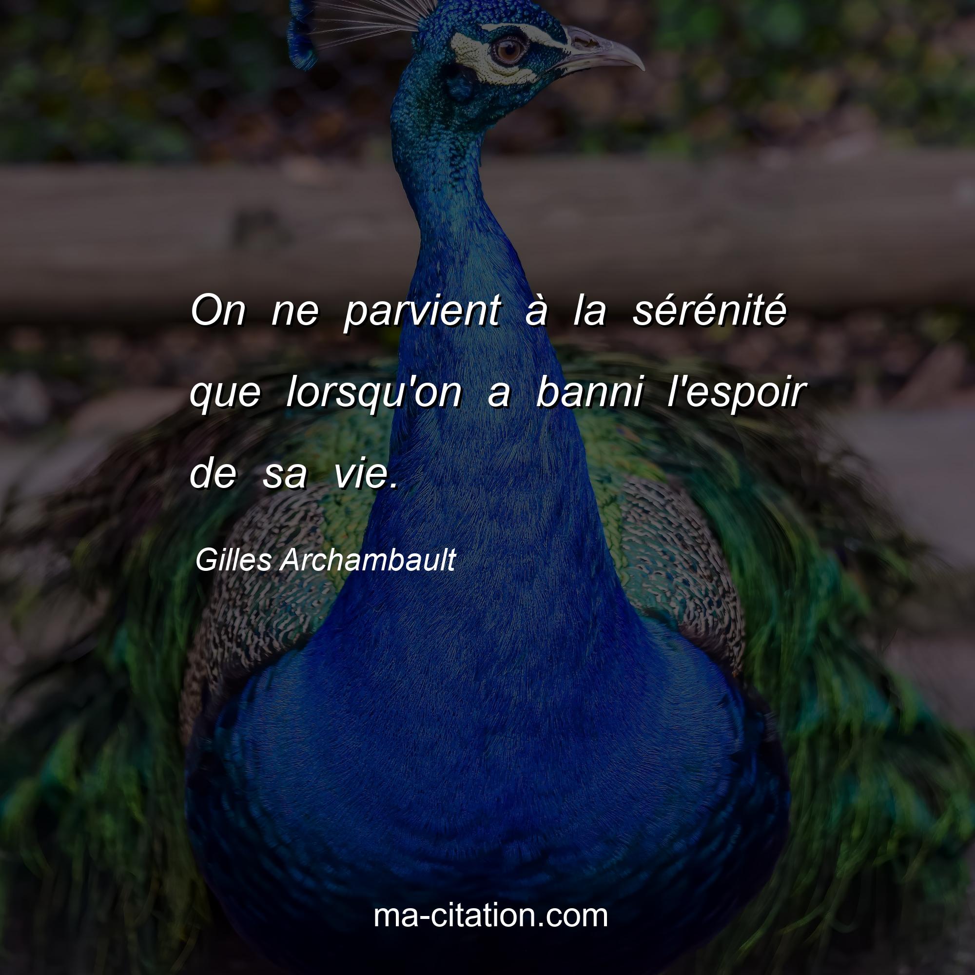 Citation sur la vie de Gilles Archambault :On ne parvient à la sérénité que lorsqu'on a banni l'espoir de sa vie.