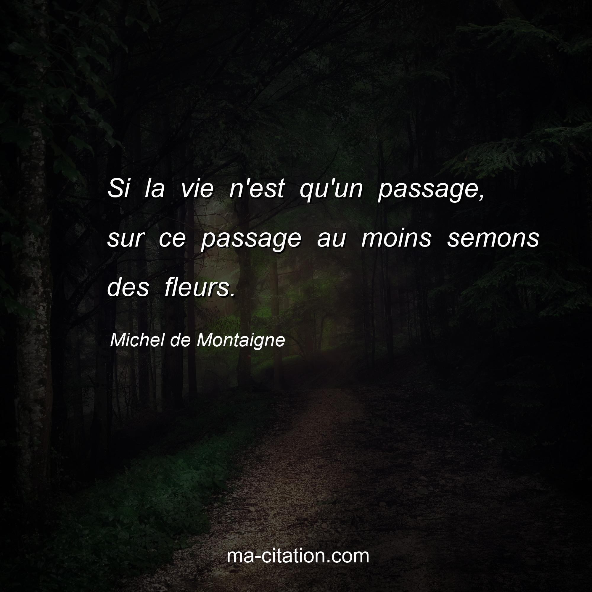 Citation sur la vie de Michel de Montaigne :Si la vie n'est qu'un passage, sur ce passage au moins semons des fleurs.