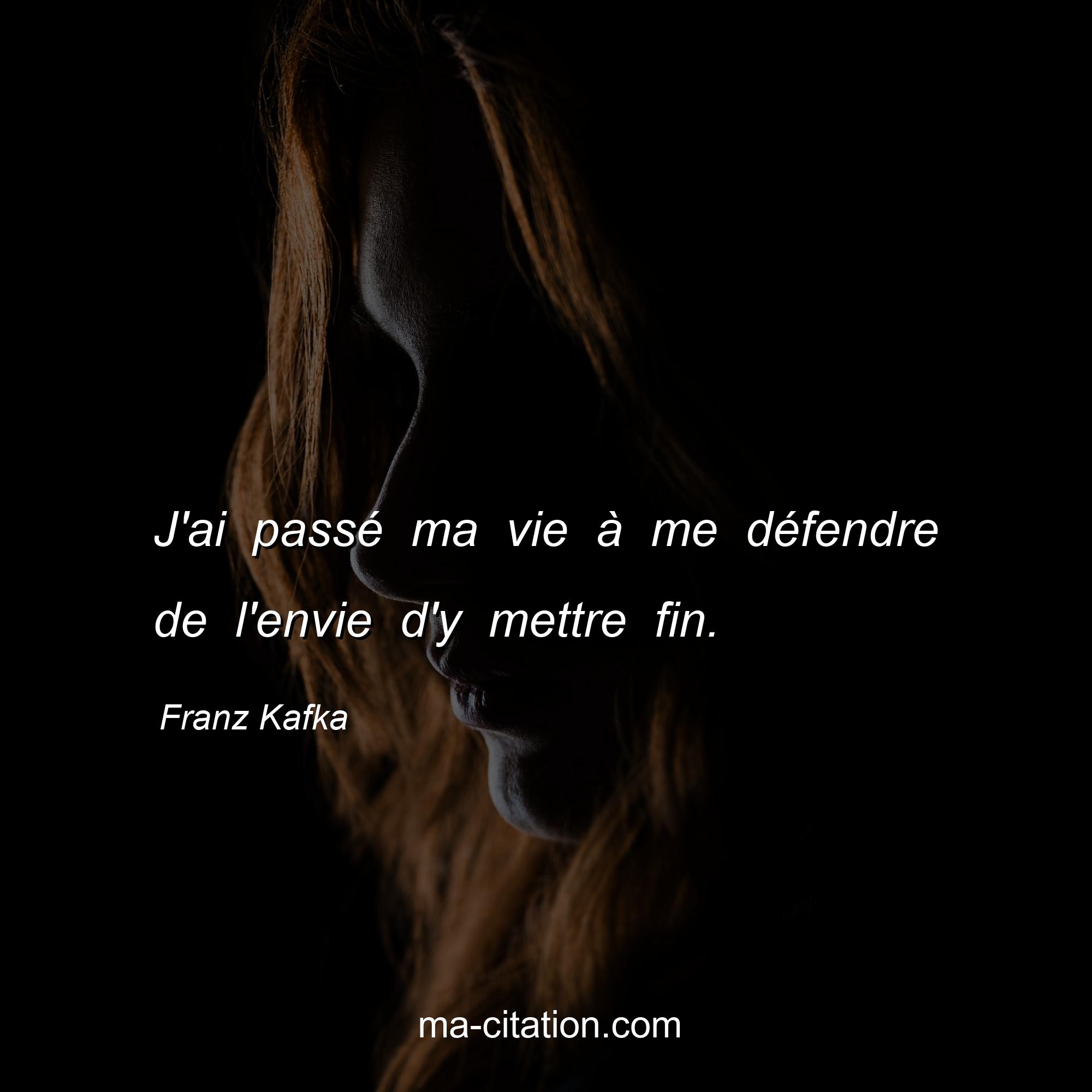 Citation sur la vie de Franz Kafka :J'ai passé ma vie à me défendre de l'envie d'y mettre fin.