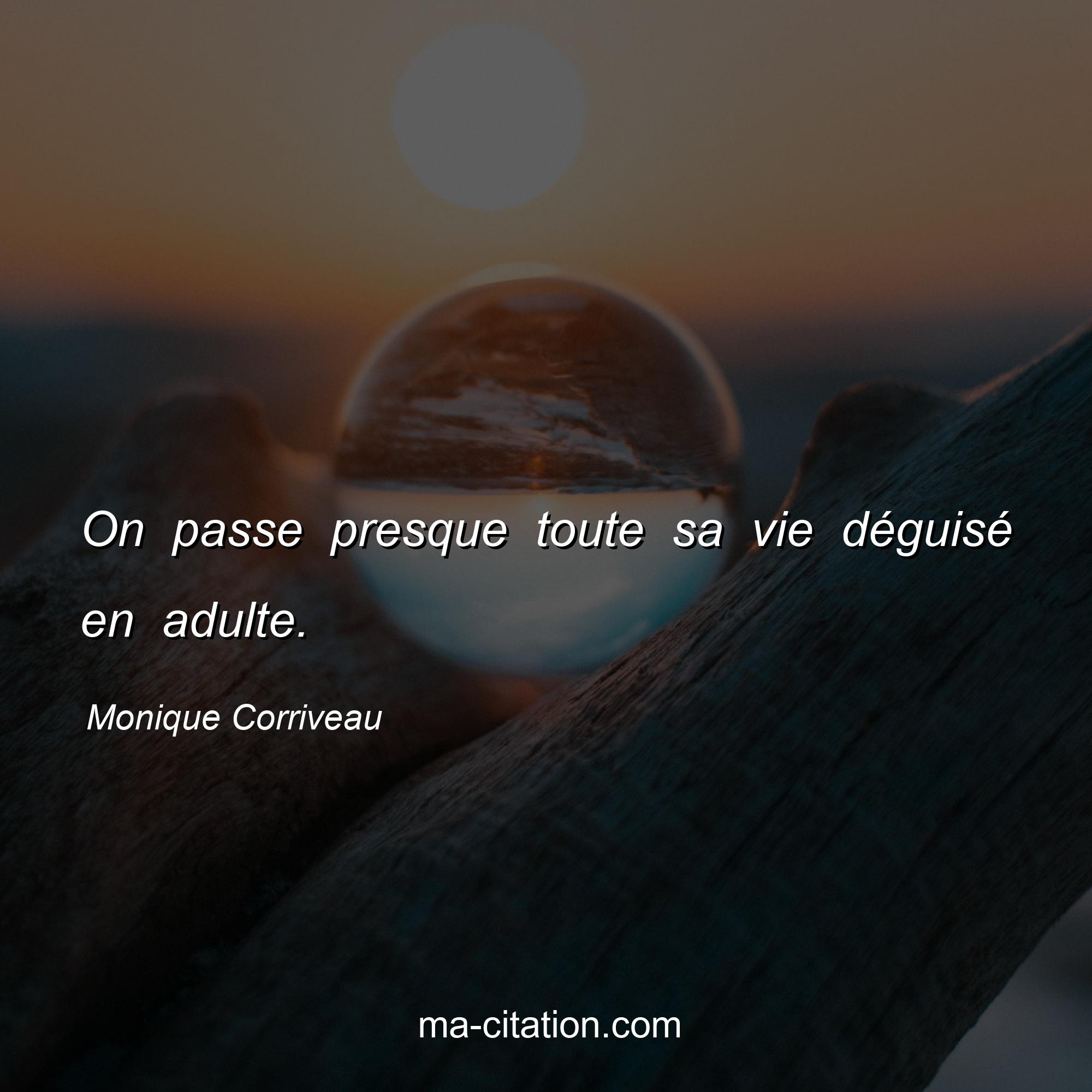 Monique Corriveau est l'auteur de la citation sur la vie "On passe presque toute sa vie déguisé en adulte.".