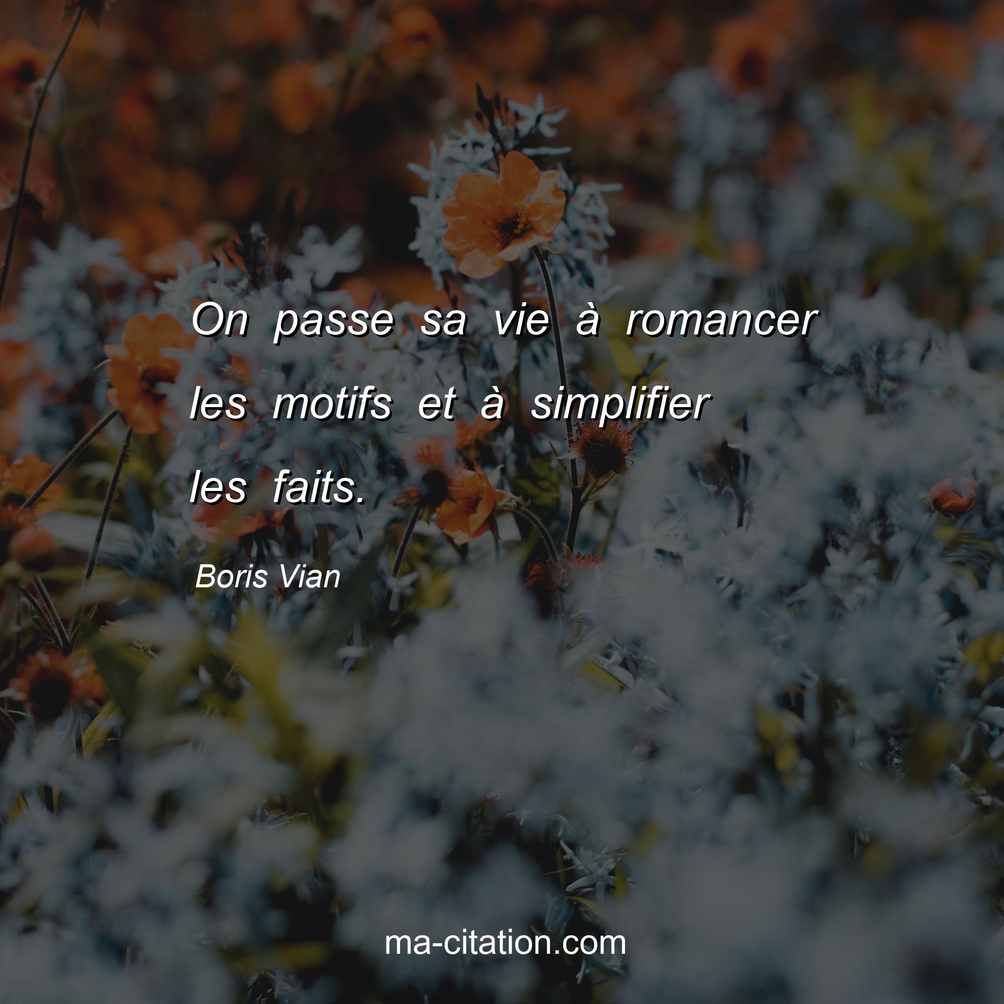 Boris Vian est l'auteur de la citation sur la vie "On passe sa vie à romancer les motifs et à simplifier les faits.".