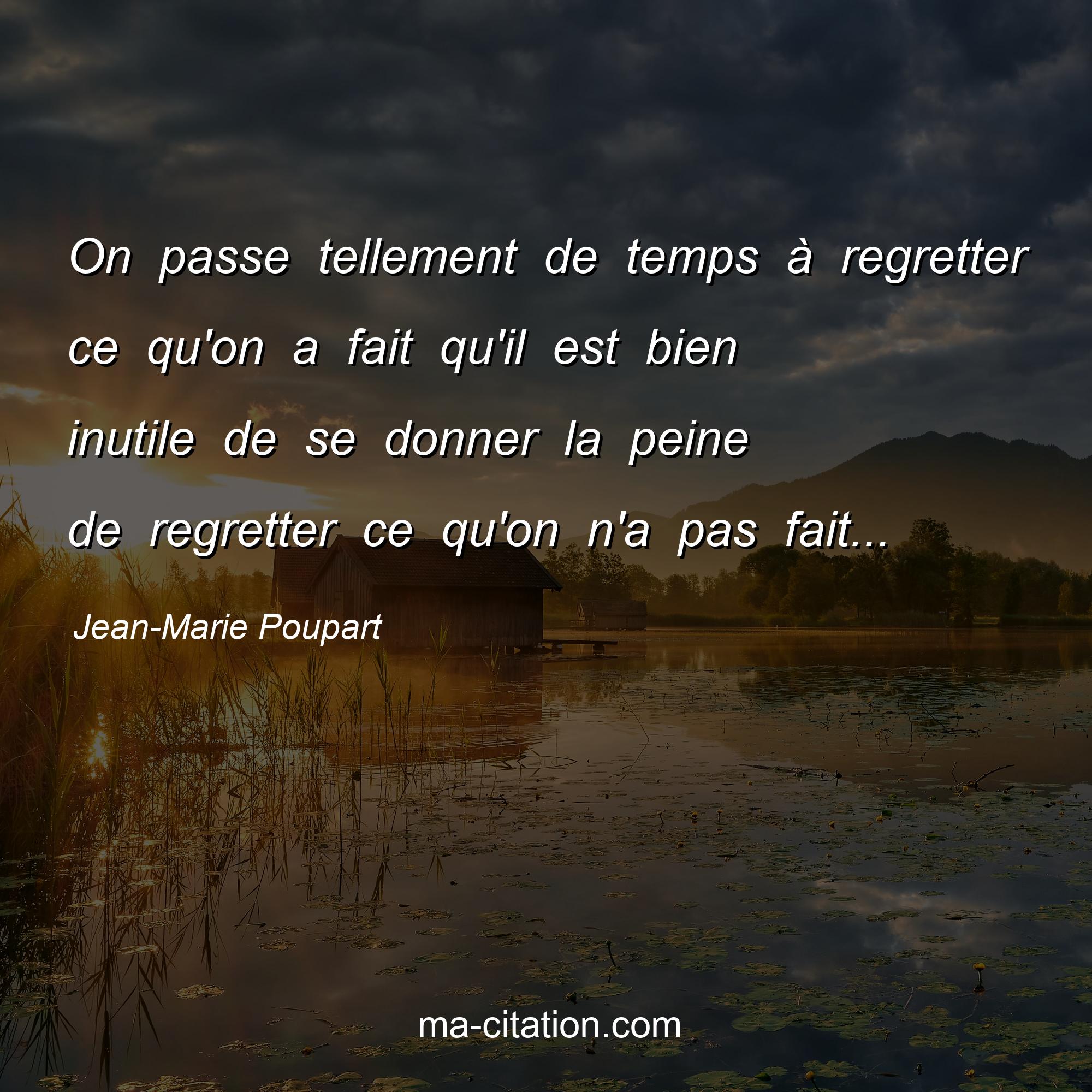 Jean-Marie Poupart est l'auteur de la citation sur la vie "On passe tellement de temps à regretter ce qu'on a fait qu'il est bien inutile de se donner la peine de regretter ce qu'on n'a pas fait...".