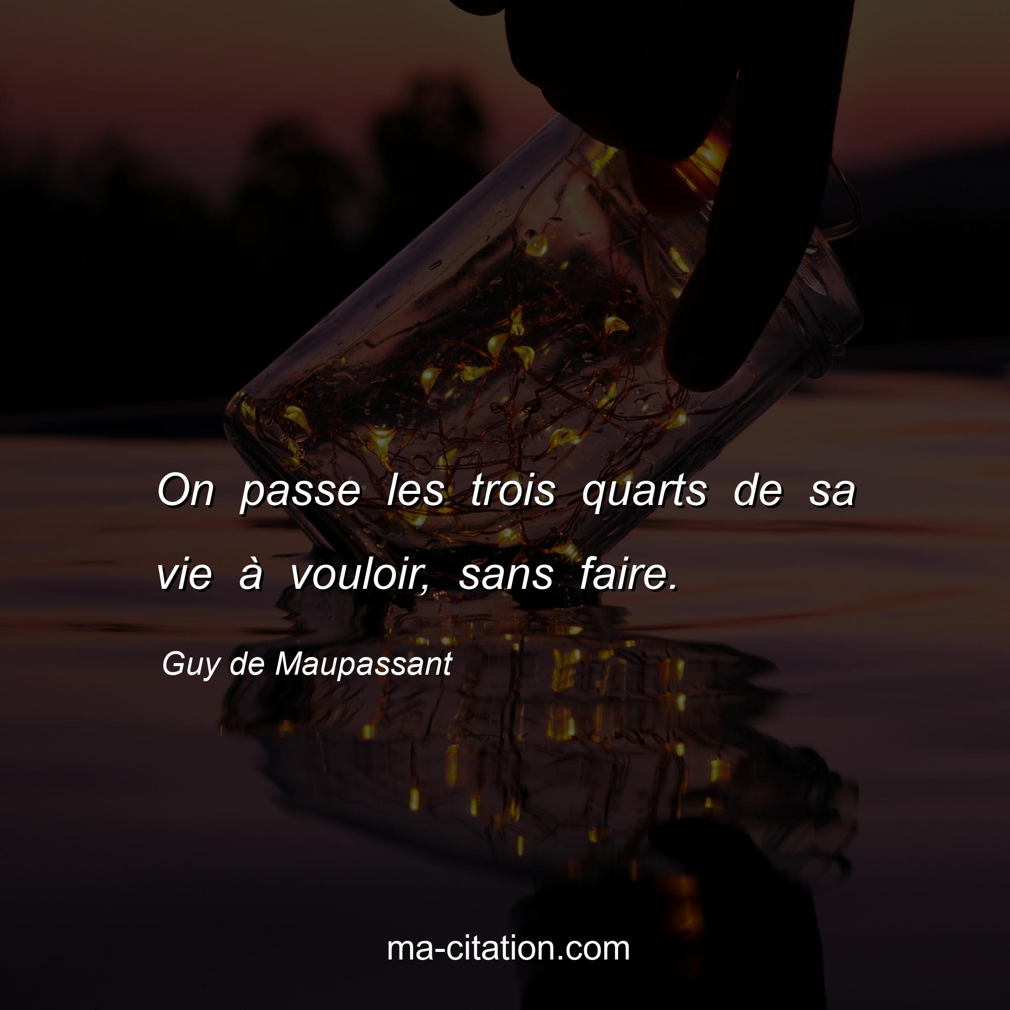 Citation sur la vie de Guy de Maupassant :On passe les trois quarts de sa vie à vouloir, sans faire.