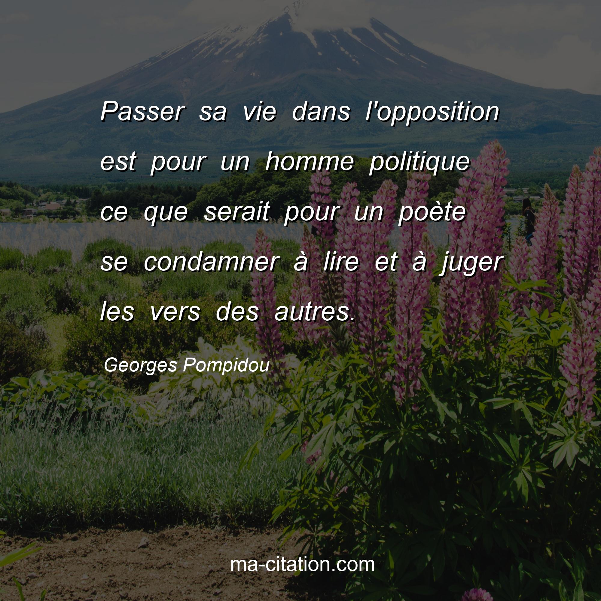 Georges Pompidou est l'auteur de la citation sur la vie "Passer sa vie dans l'opposition est pour un homme politique ce que serait pour un poète se condamner à lire et à juger les vers des autres.".