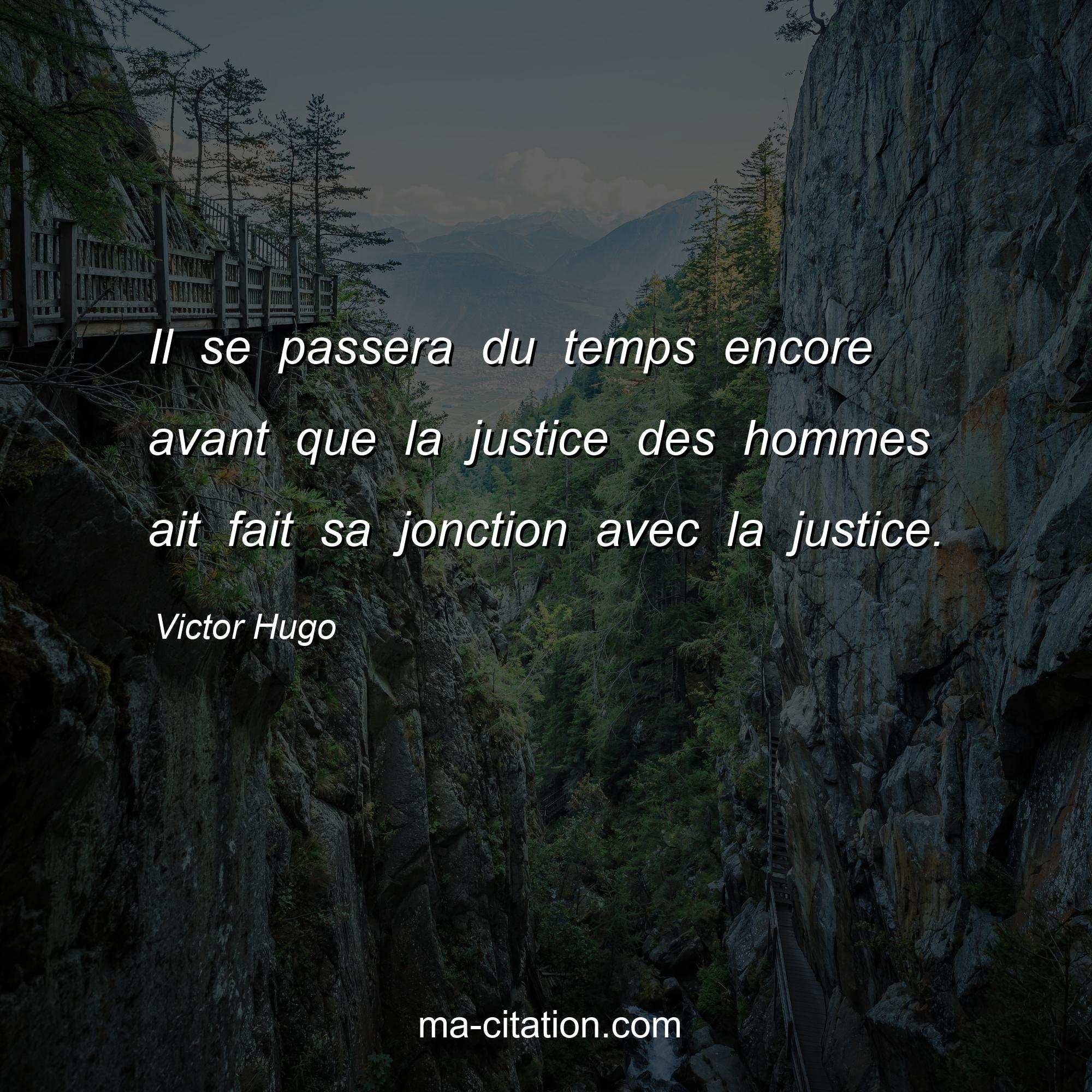 Citation sur la vie de Victor Hugo :Il se passera du temps encore avant que la justice des hommes ait fait sa jonction avec la justice.