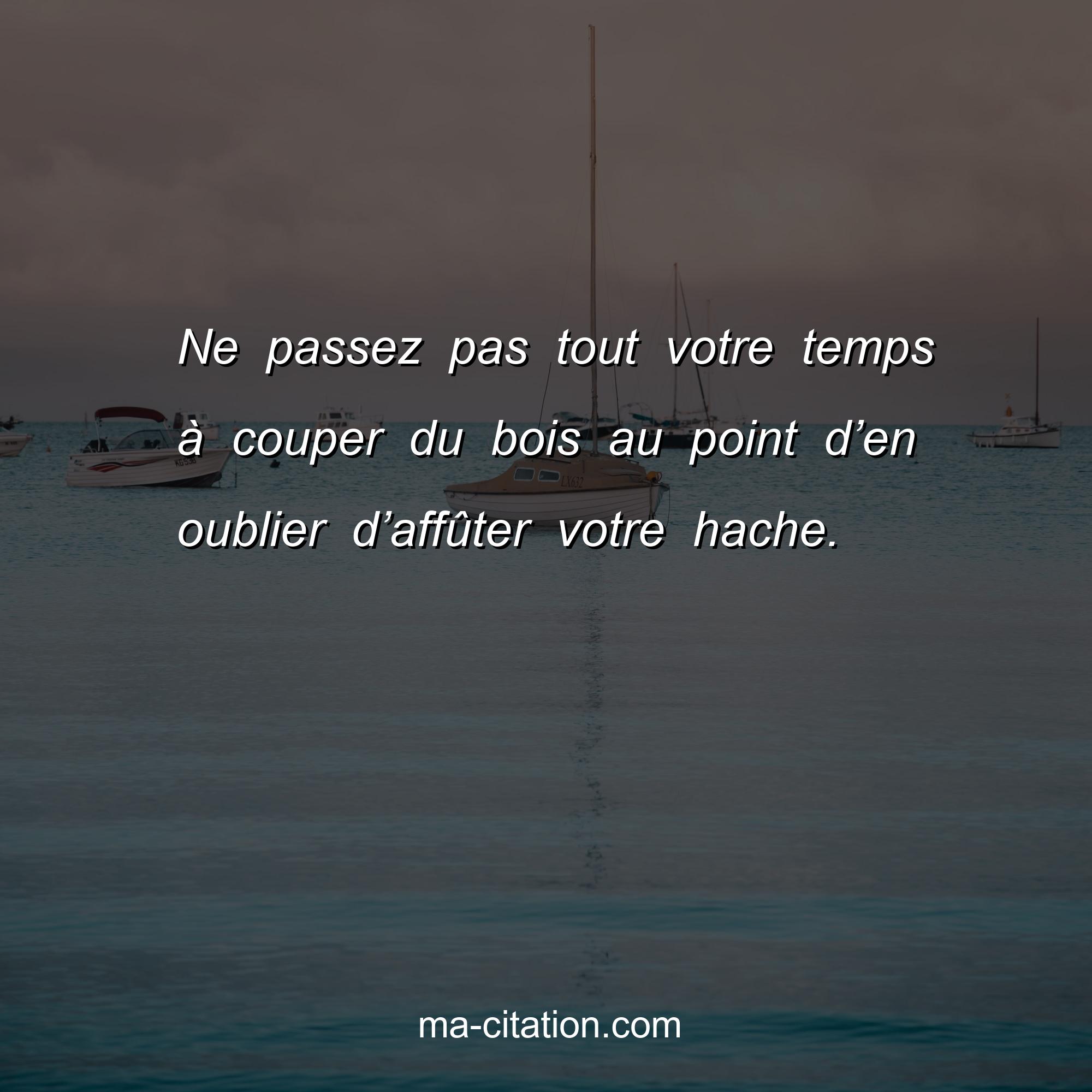 Citation sur la vie :Ne passez pas tout votre temps à couper du bois au point d’en oublier d’affûter votre hache.
