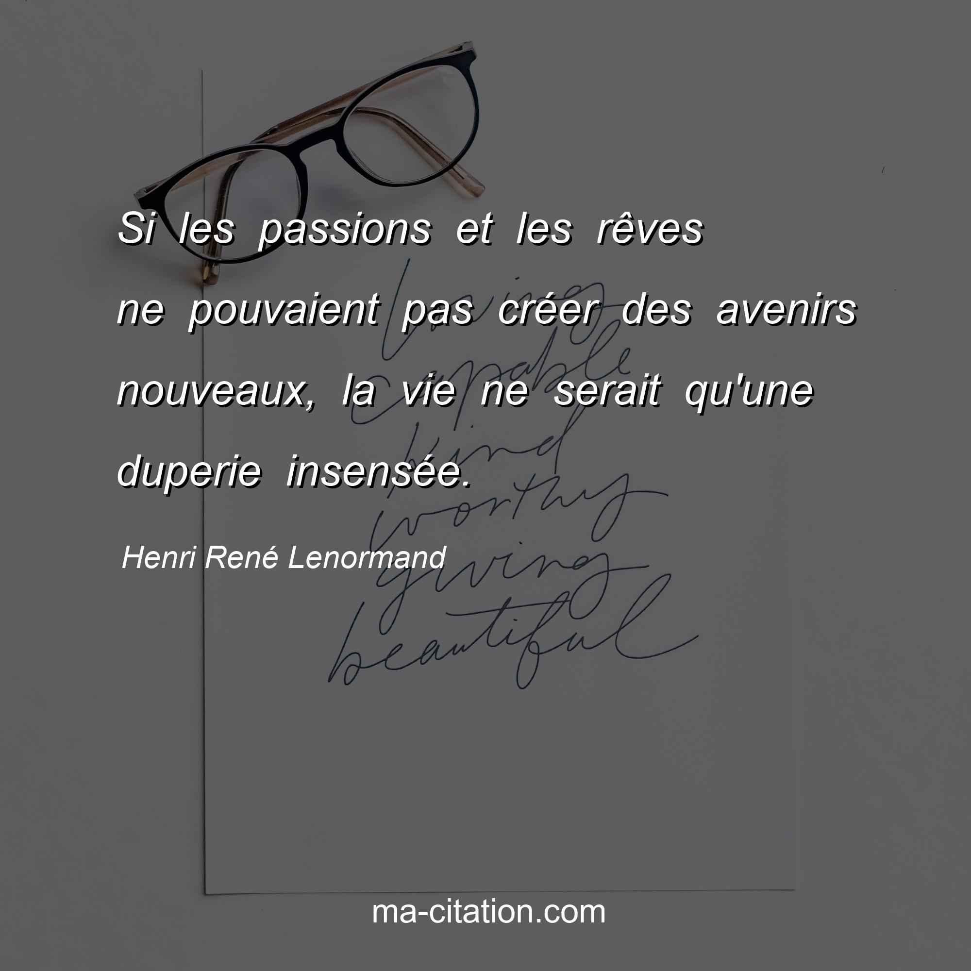 Citation sur la vie de Henri René Lenormand :Si les passions et les rêves ne pouvaient pas créer des avenirs nouveaux, la vie ne serait qu'une duperie insensée.
