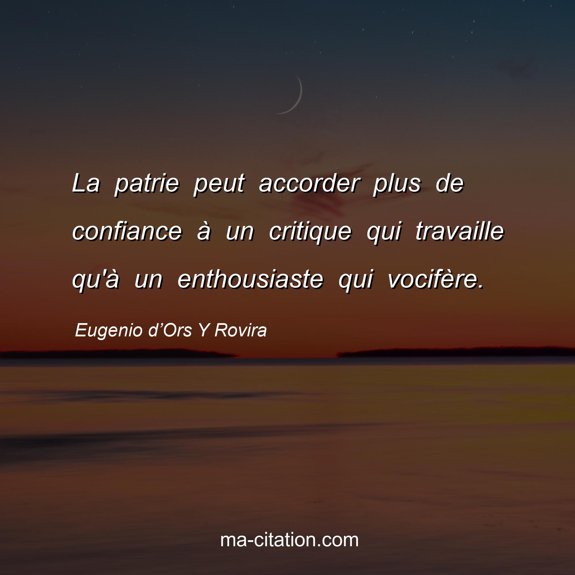 Citation sur la vie d'Eugenio d’Ors Y Rovira :La patrie peut accorder plus de confiance à un critique qui travaille qu'à un enthousiaste qui vocifère.