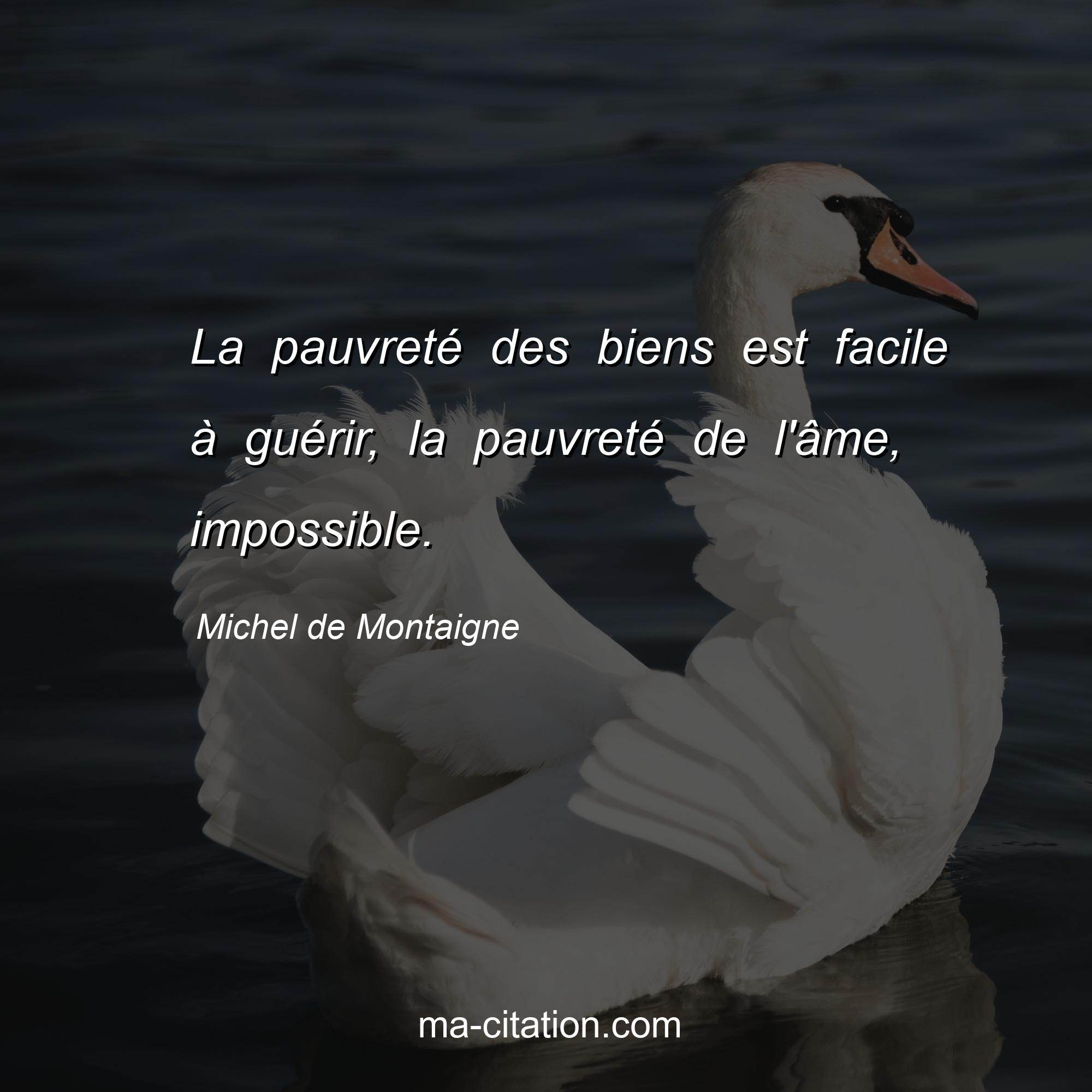 Citation sur la vie de Michel de Montaigne :La pauvreté des biens est facile à guérir, la pauvreté de l'âme, impossible.
