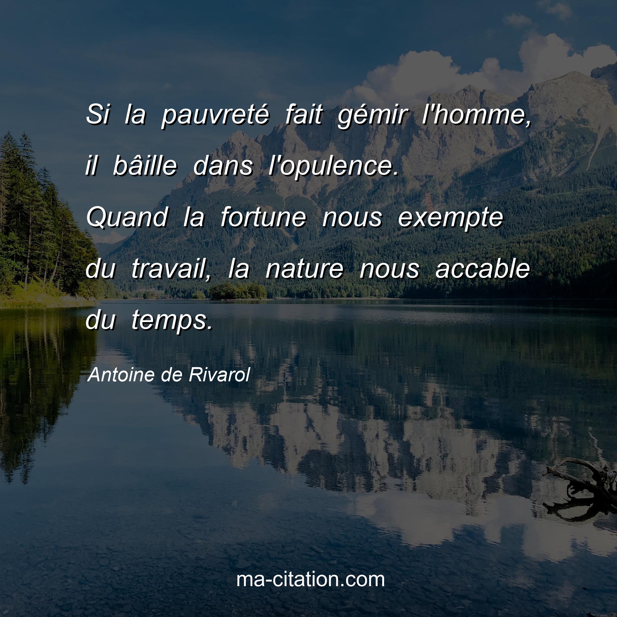 Citation sur la vie d'Antoine de Rivarol :Si la pauvreté fait gémir l'homme, il bâille dans l'opulence. Quand la fortune nous exempte du travail, la nature nous accable du temps.