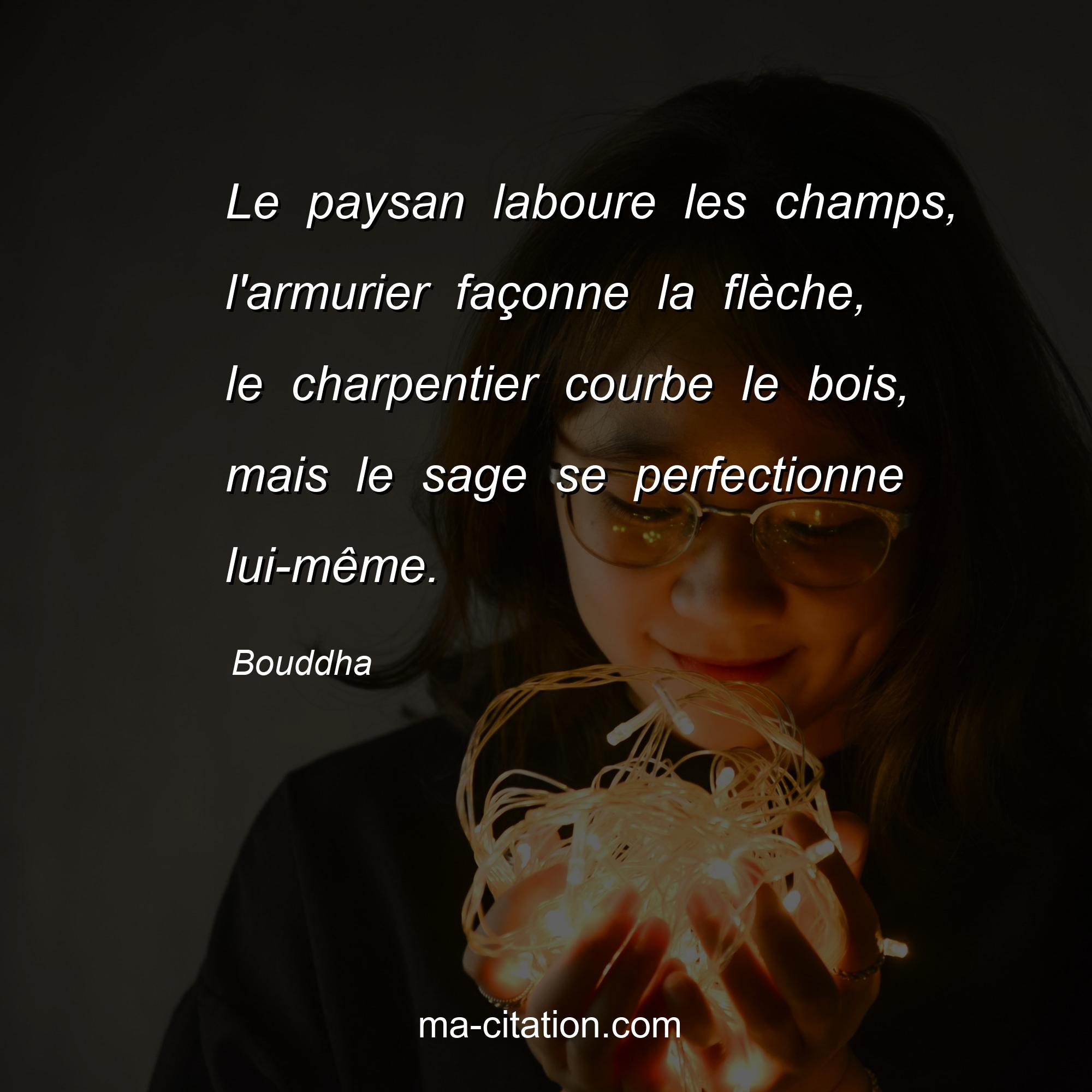 Citation sur la vie de Bouddha :Le paysan laboure les champs, l'armurier façonne la flèche, le charpentier courbe le bois, mais le sage se perfectionne lui-même.