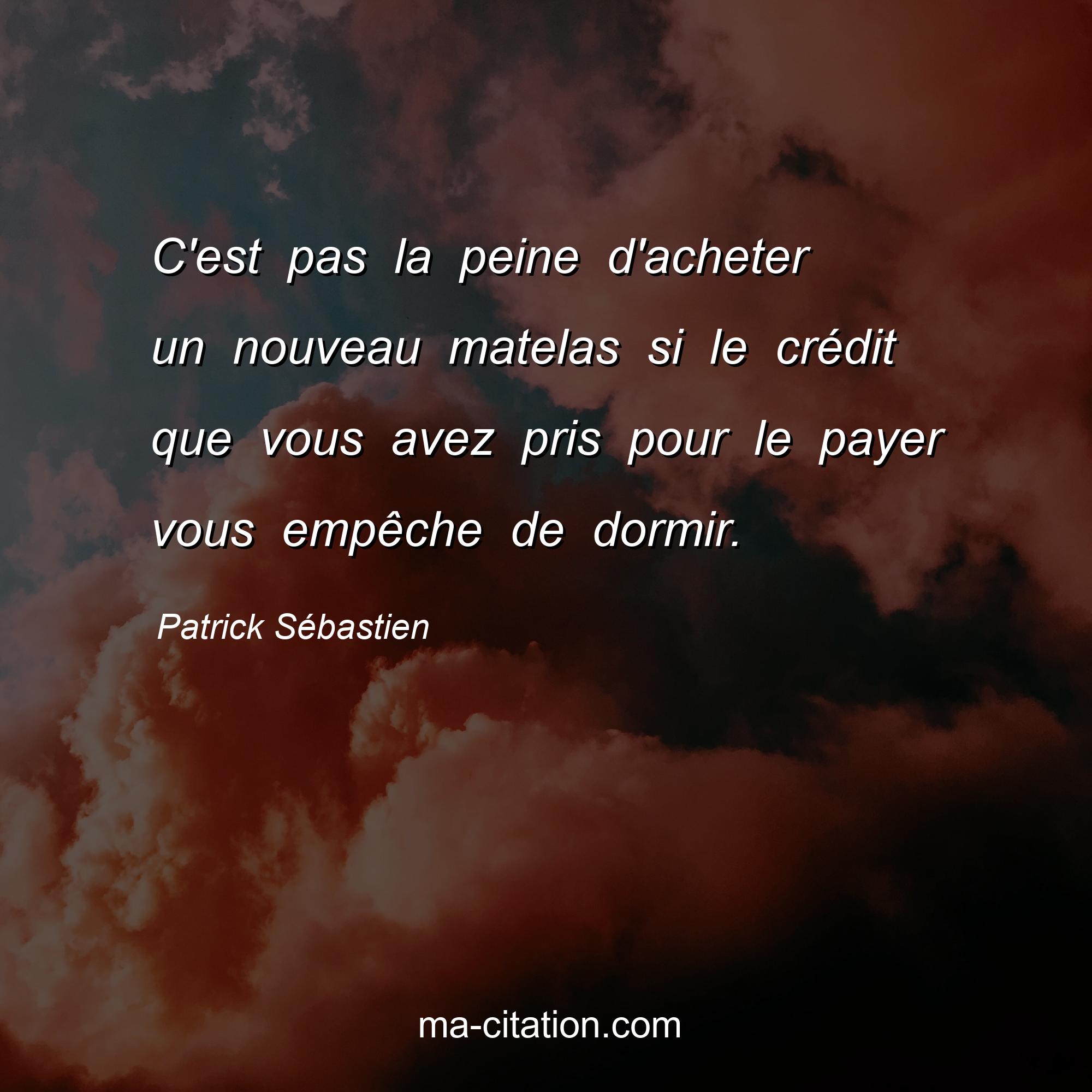 Citation sur la vie de Patrick Sébastien :C'est pas la peine d'acheter un nouveau matelas si le crédit que vous avez pris pour le payer vous empêche de dormir.