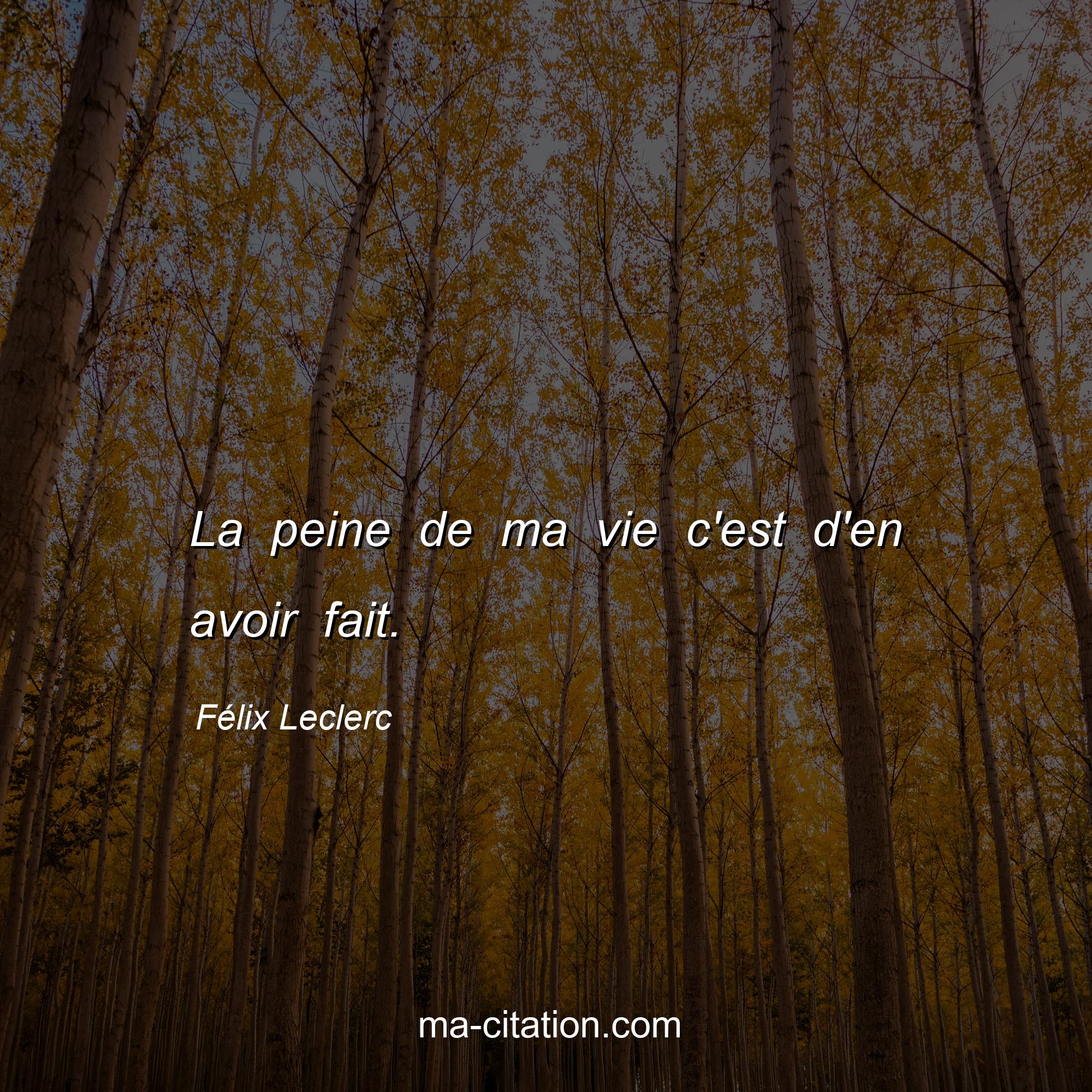 Félix Leclerc est l'auteur de la citation sur la vie "La peine de ma vie c'est d'en avoir fait.".