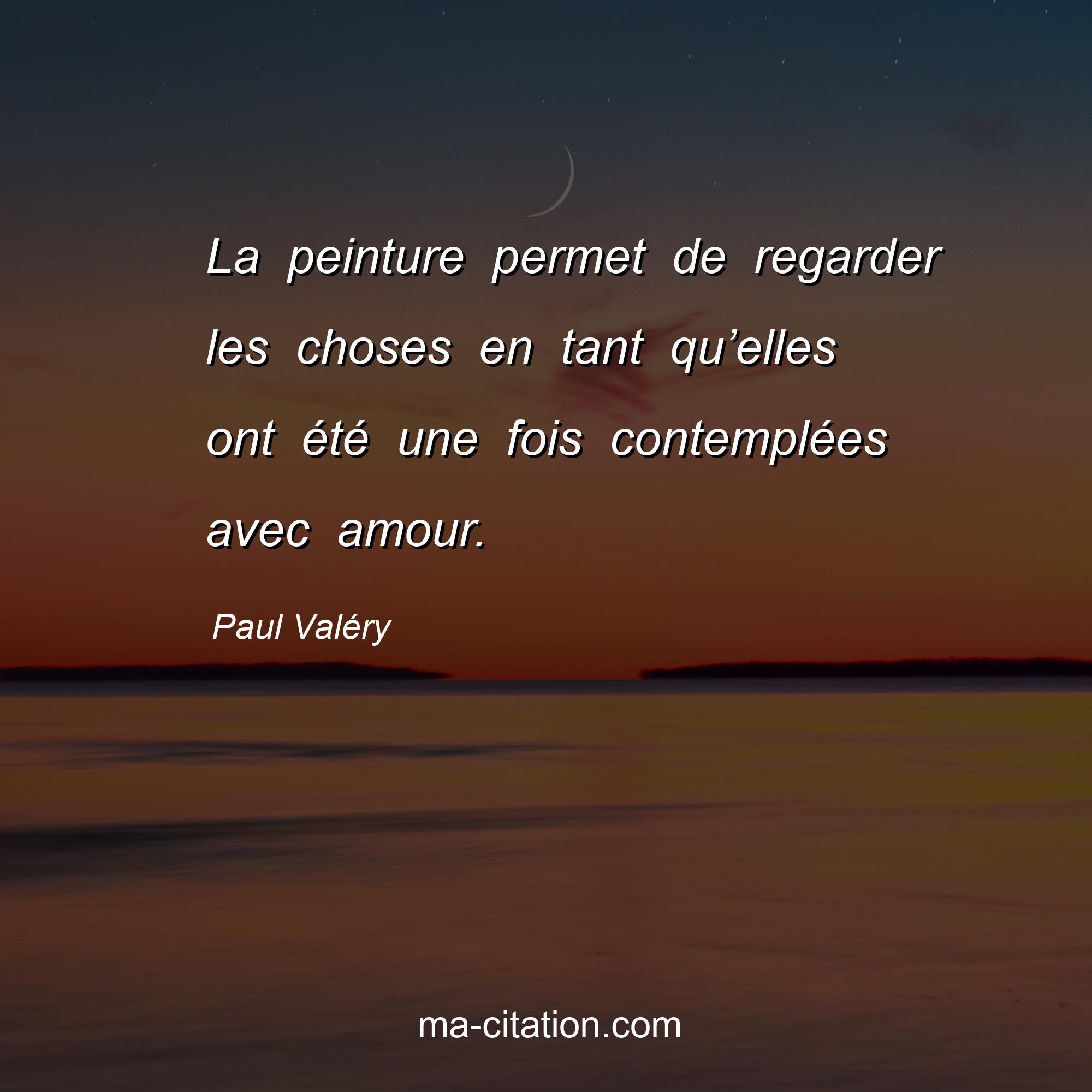 Citation sur la vie de Paul Valéry :La peinture permet de regarder les choses en tant qu’elles ont été une fois contemplées avec amour.