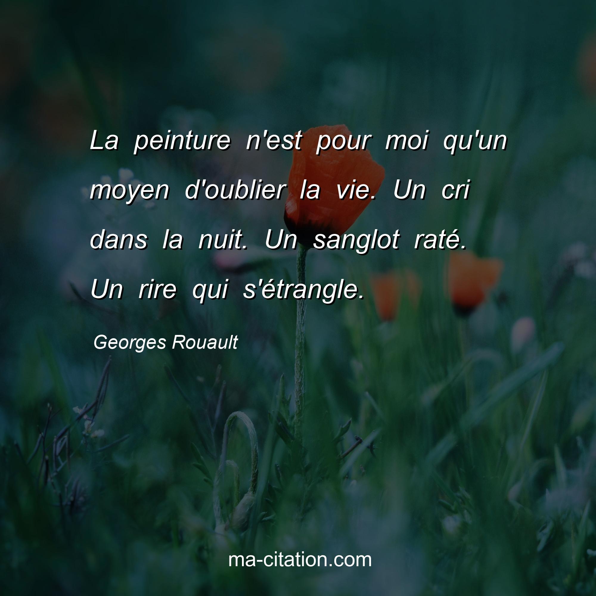 Citation sur la vie de Georges Rouault :La peinture n'est pour moi qu'un moyen d'oublier la vie. Un cri dans la nuit. Un sanglot raté. Un rire qui s'étrangle.