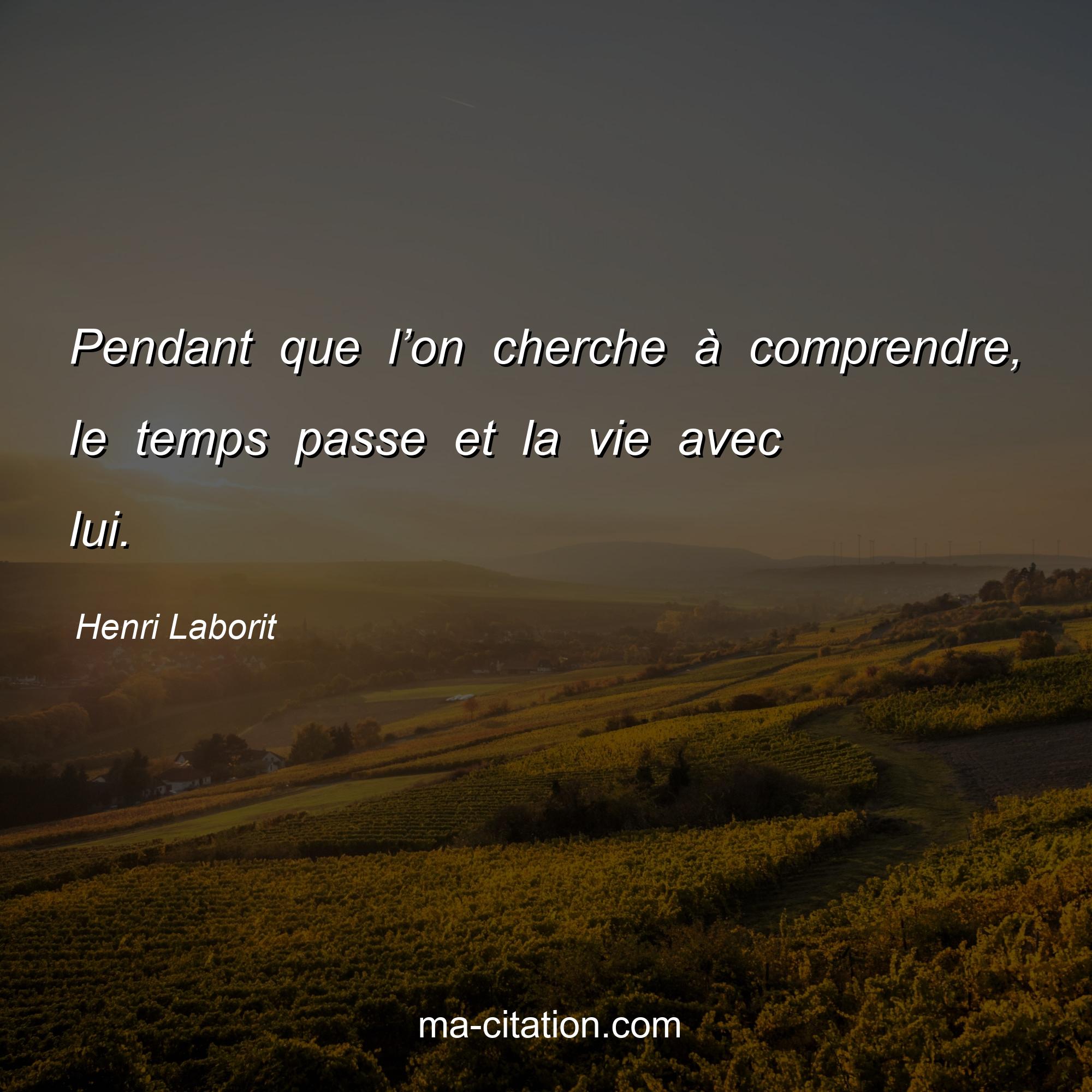Citation sur la vie de Henri Laborit :Pendant que l’on cherche à comprendre, le temps passe et la vie avec lui.