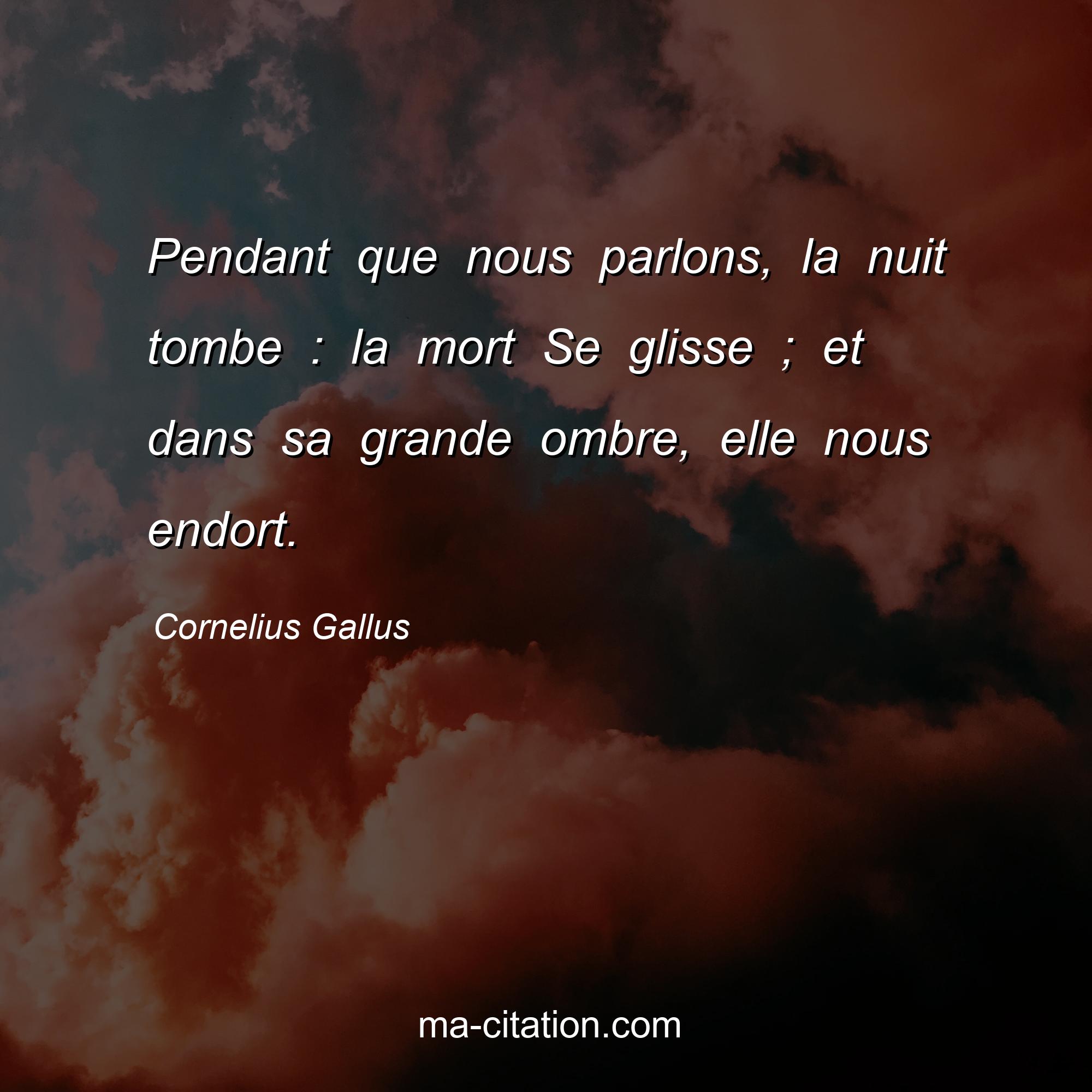 Cornelius Gallus est l'auteur de la citation sur la vie "Pendant que nous parlons, la nuit tombe : la mort Se glisse ; et dans sa grande ombre, elle nous endort.".