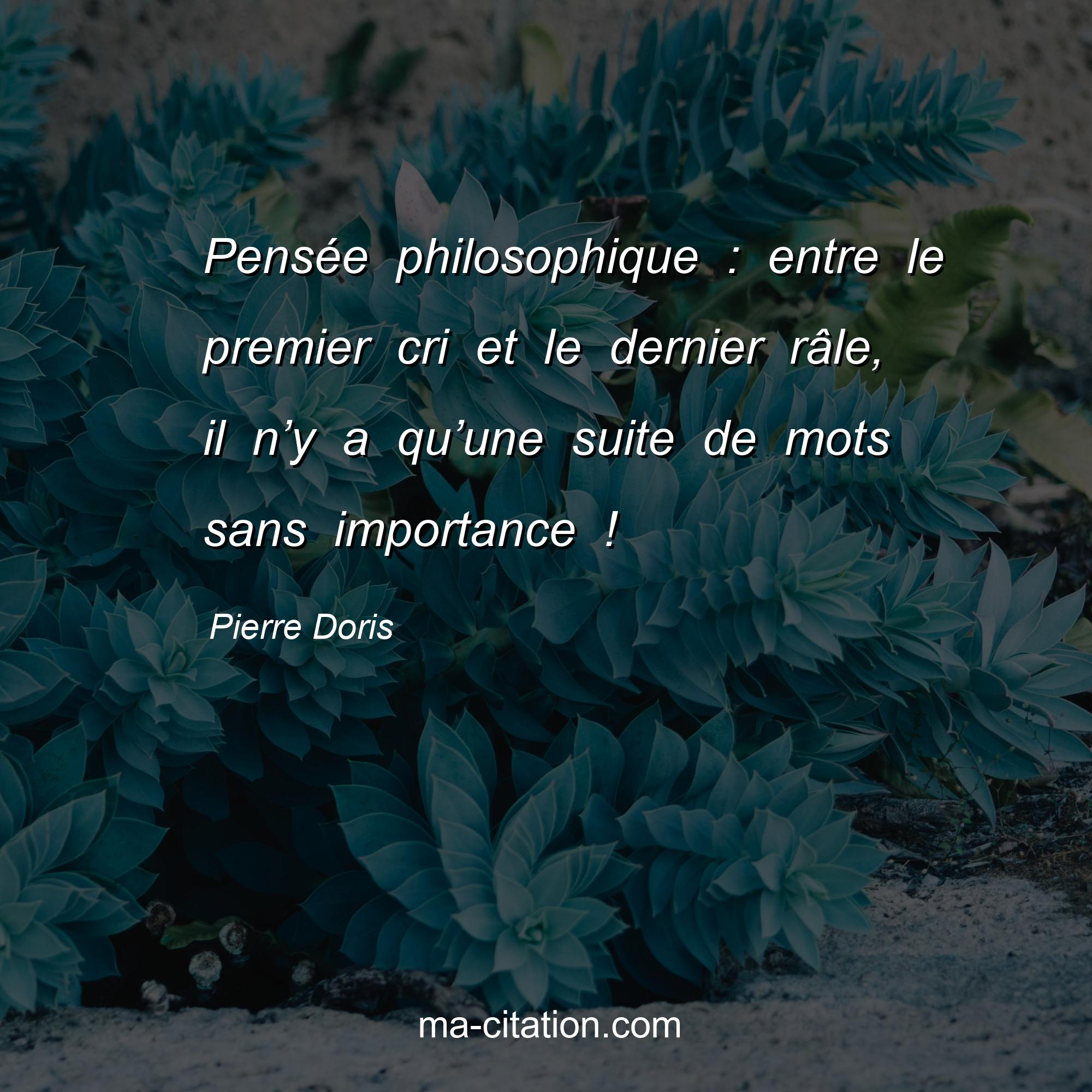 Pierre Doris est l'auteur de la citation sur la vie "Pensée philosophique : entre le premier cri et le dernier râle, il n’y a qu’une suite de mots sans importance !".