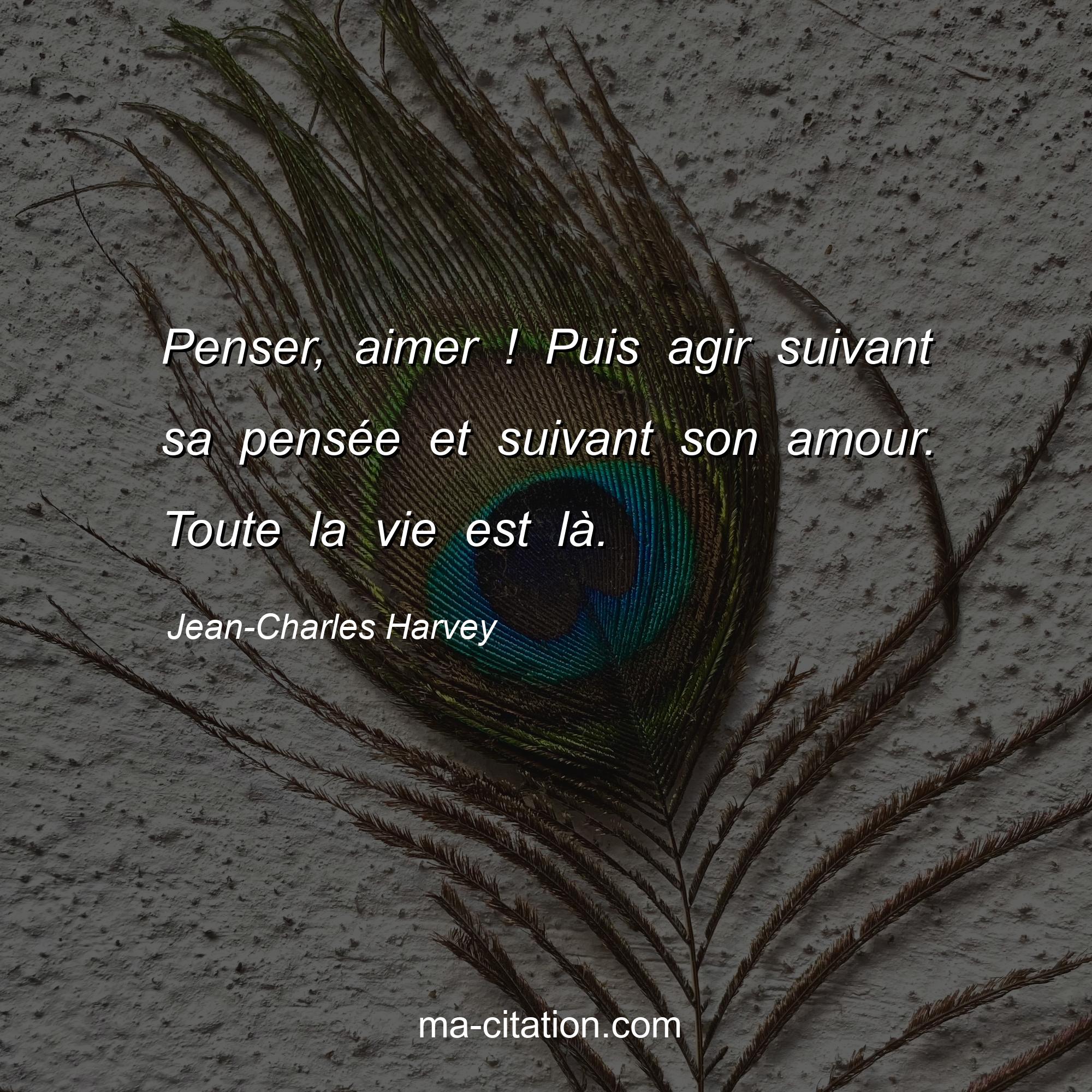 Jean-Charles Harvey est l'auteur de la citation sur la vie "Penser, aimer ! Puis agir suivant sa pensée et suivant son amour. Toute la vie est là .".