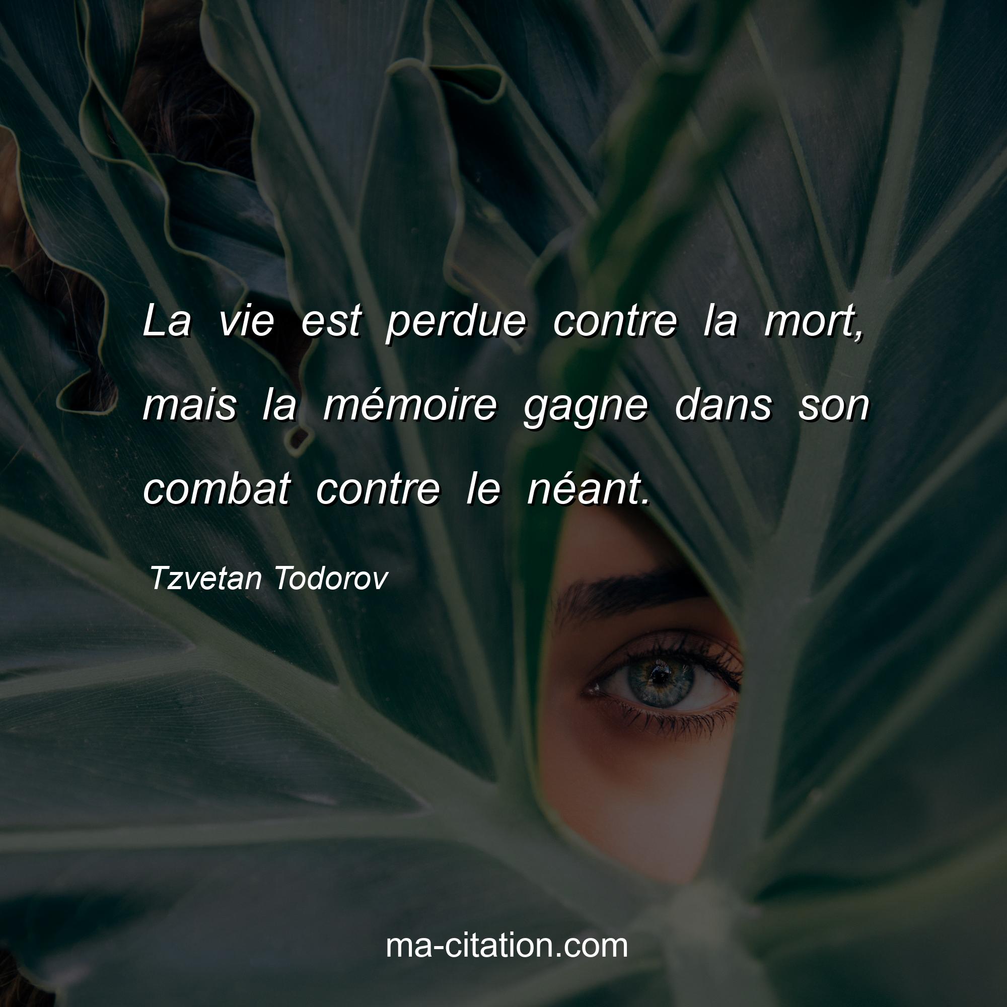 Tzvetan Todorov est l'auteur de la citation sur la vie "La vie est perdue contre la mort, mais la mémoire gagne dans son combat contre le néant.".