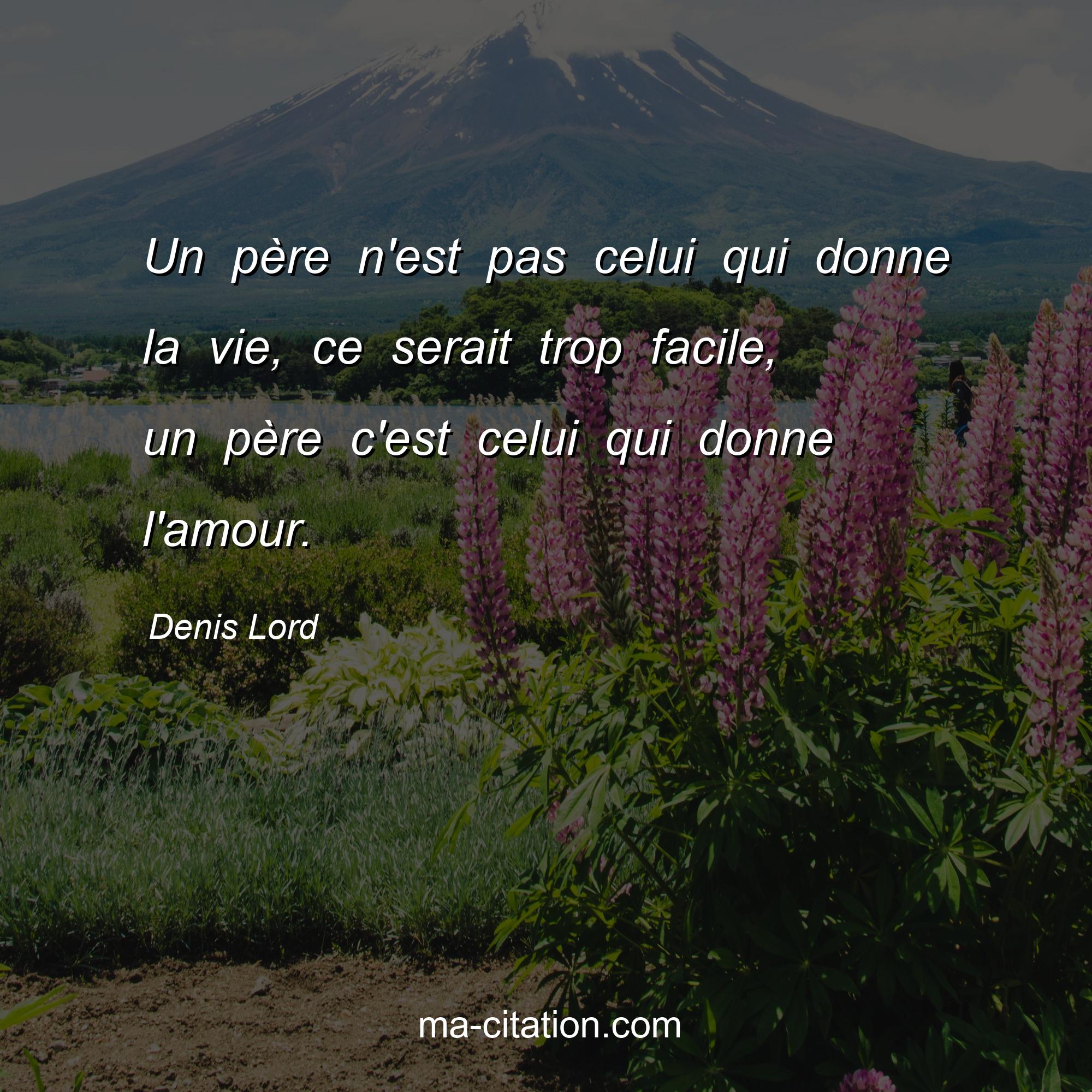Denis Lord est l'auteur de la citation sur la vie "Un père n'est pas celui qui donne la vie, ce serait trop facile, un père c'est celui qui donne l'amour.".