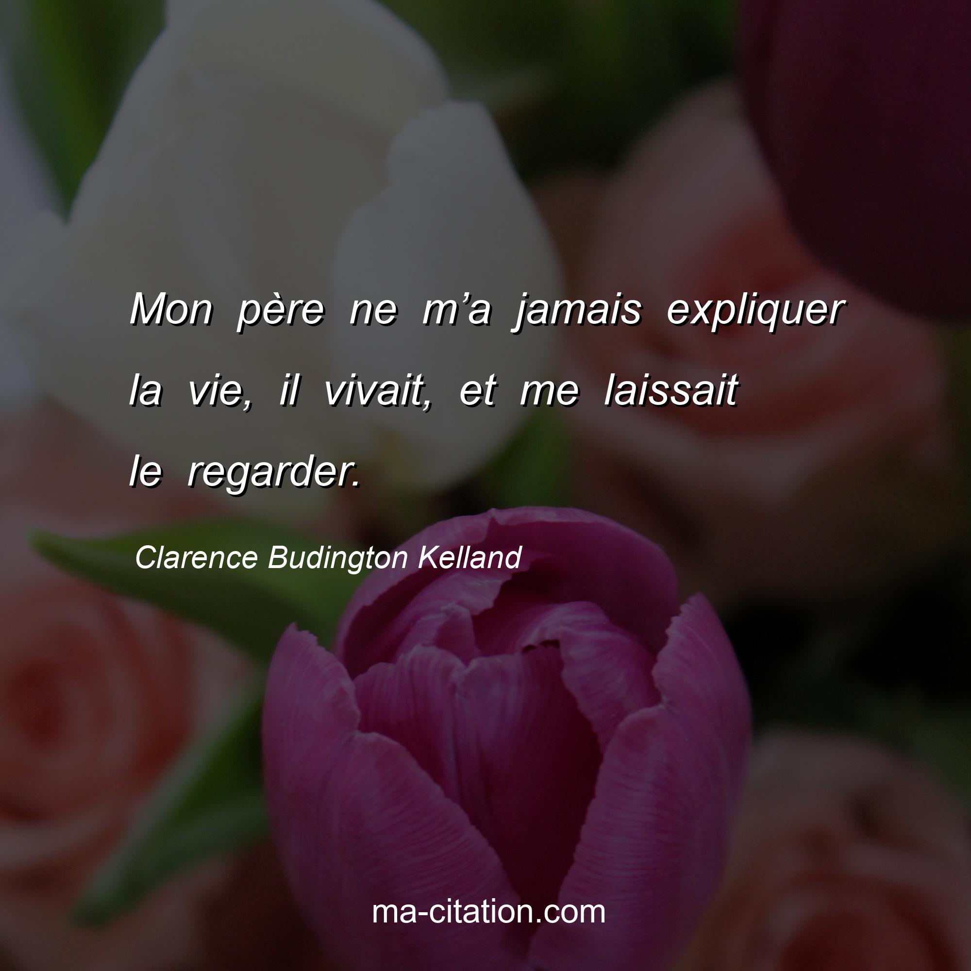 Citation sur la vie de Clarence Budington Kelland :Mon père ne m’a jamais expliquer la vie, il vivait, et me laissait le regarder.