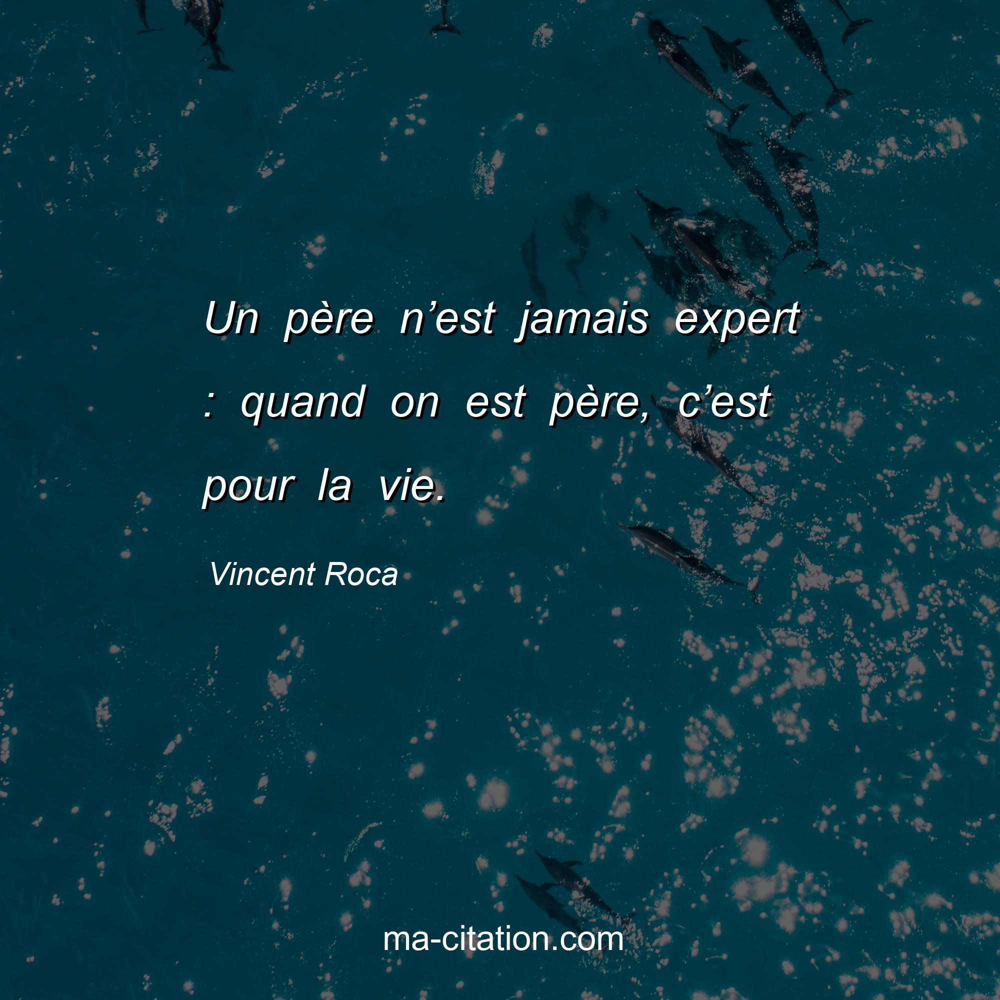 Citation sur la vie de Vincent Roca :Un père n’est jamais expert : quand on est père, c’est pour la vie.