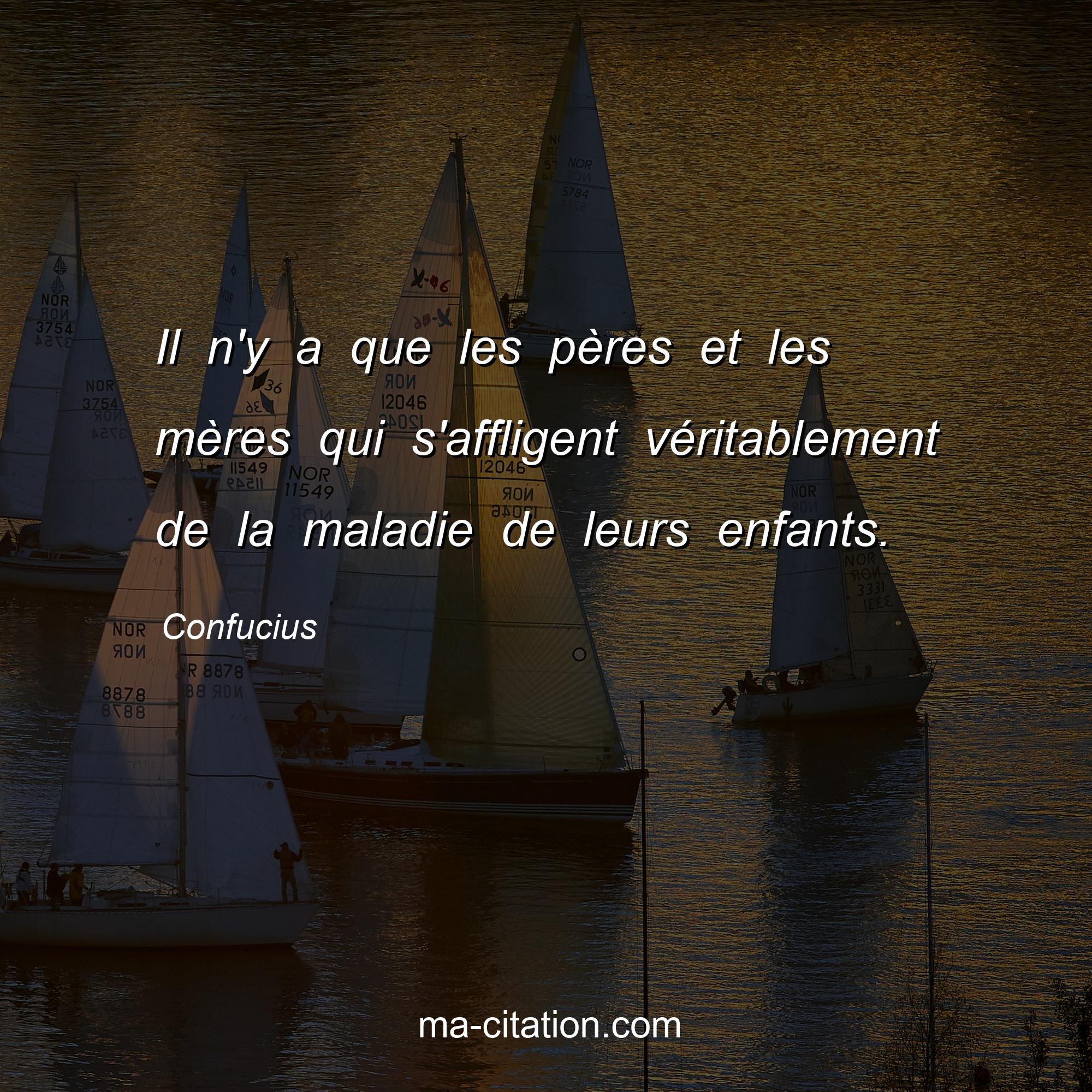 Citation sur la vie de Confucius :Il n'y a que les pères et les mères qui s'affligent véritablement de la maladie de leurs enfants.