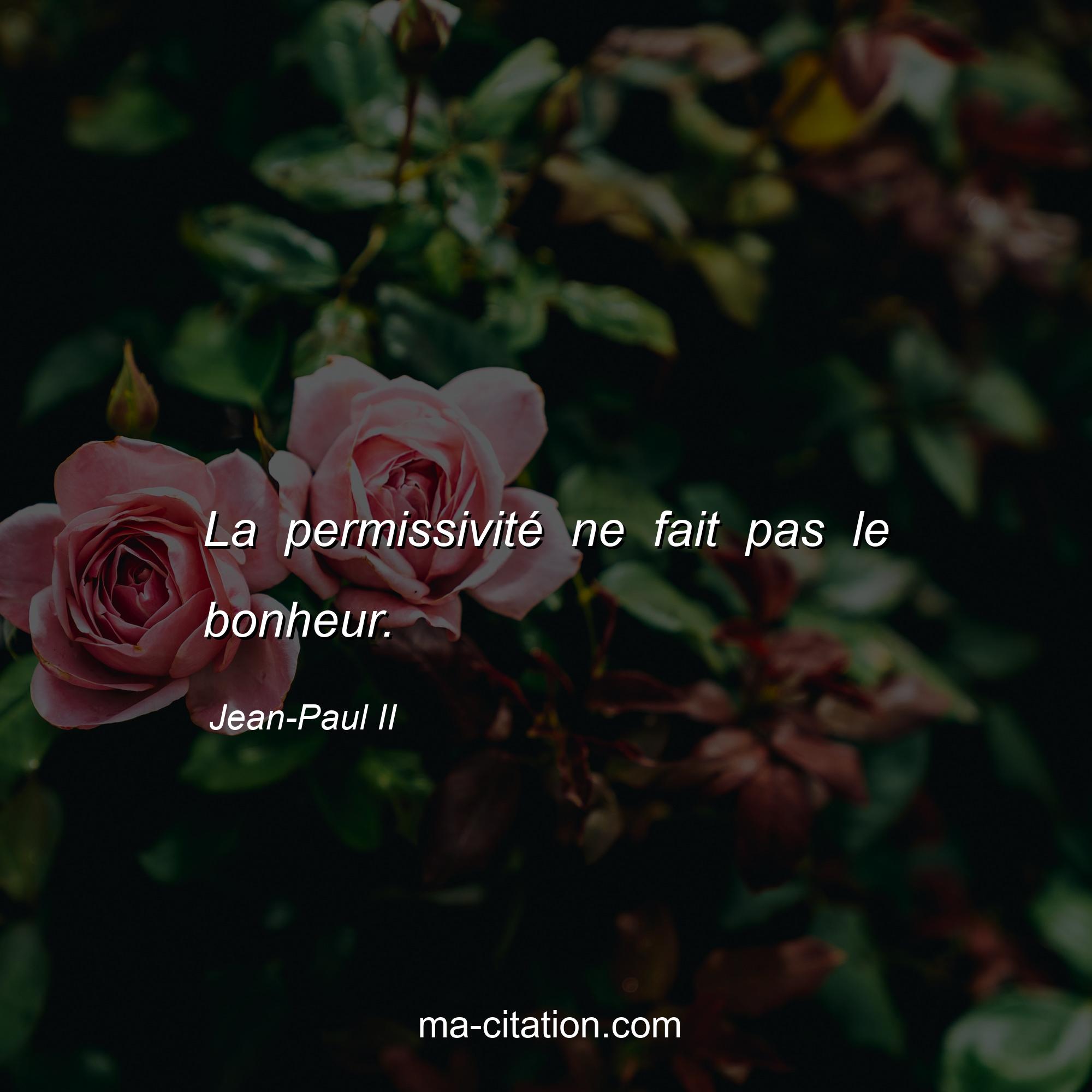 Jean-Paul II est l'auteur de la citation sur la vie "La permissivité ne fait pas le bonheur.".