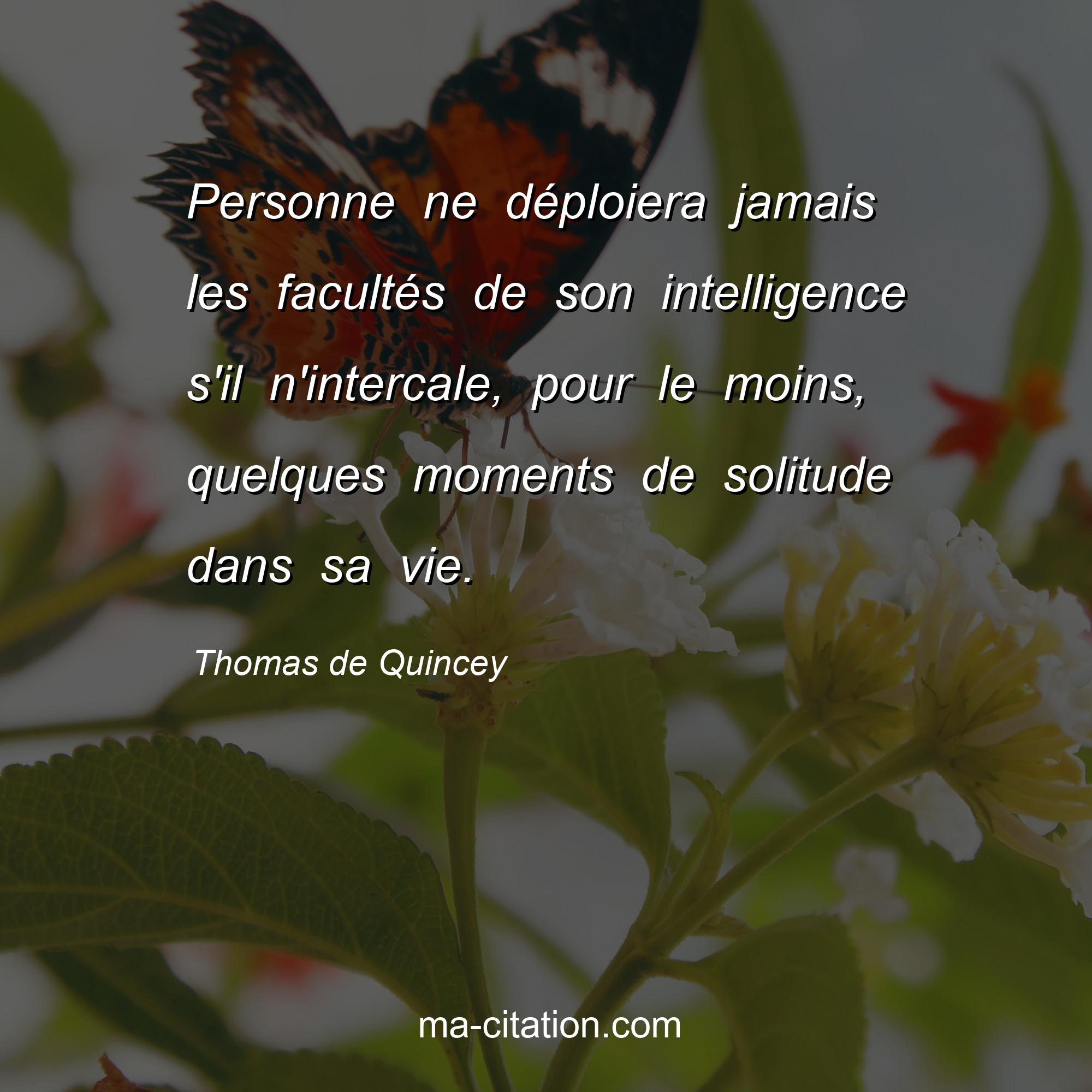 Citation sur la vie de Thomas de Quincey :Personne ne déploiera jamais les facultés de son intelligence s'il n'intercale, pour le moins, quelques moments de solitude dans sa vie.
