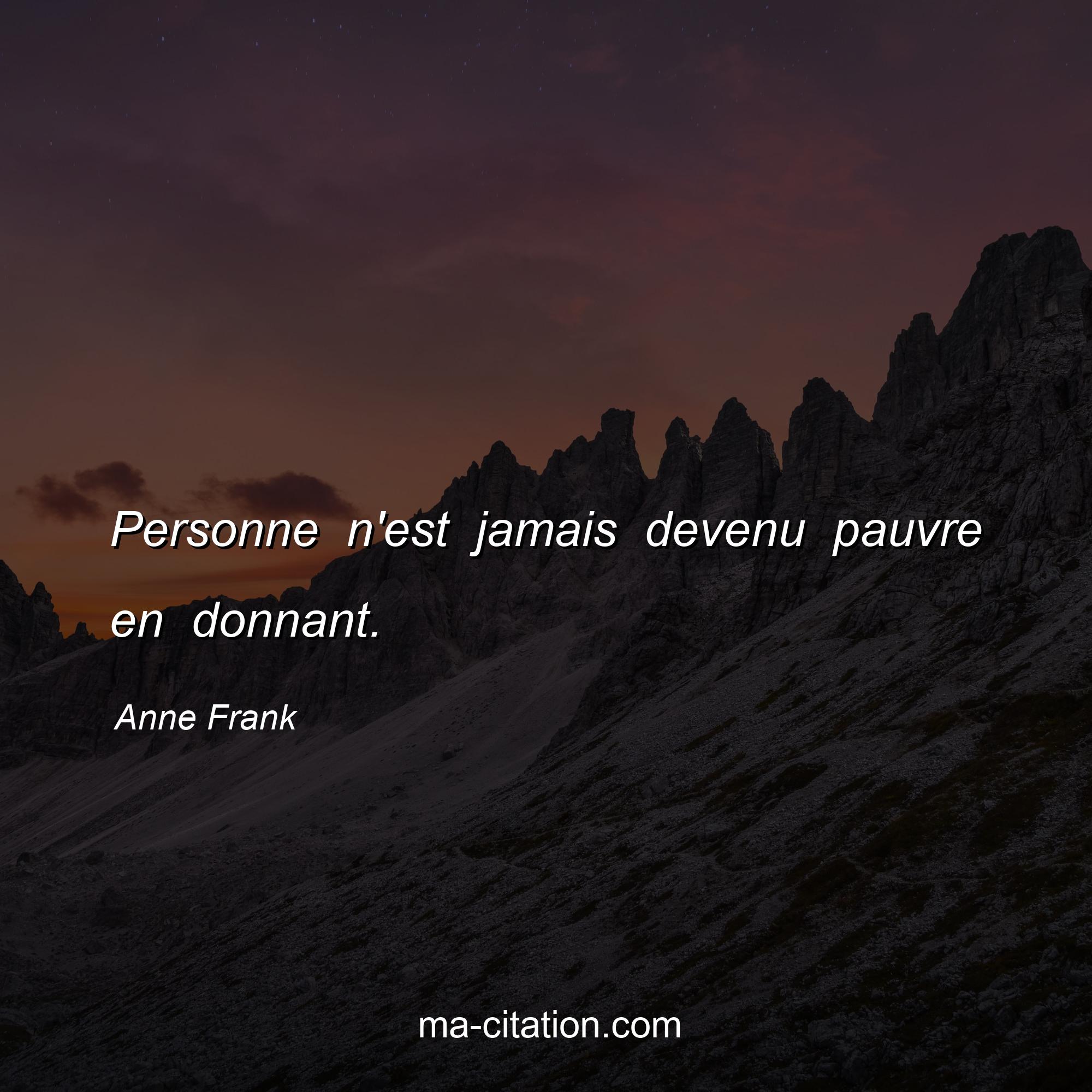 Citation sur la vie d'Anne Frank :Personne n'est jamais devenu pauvre en donnant.