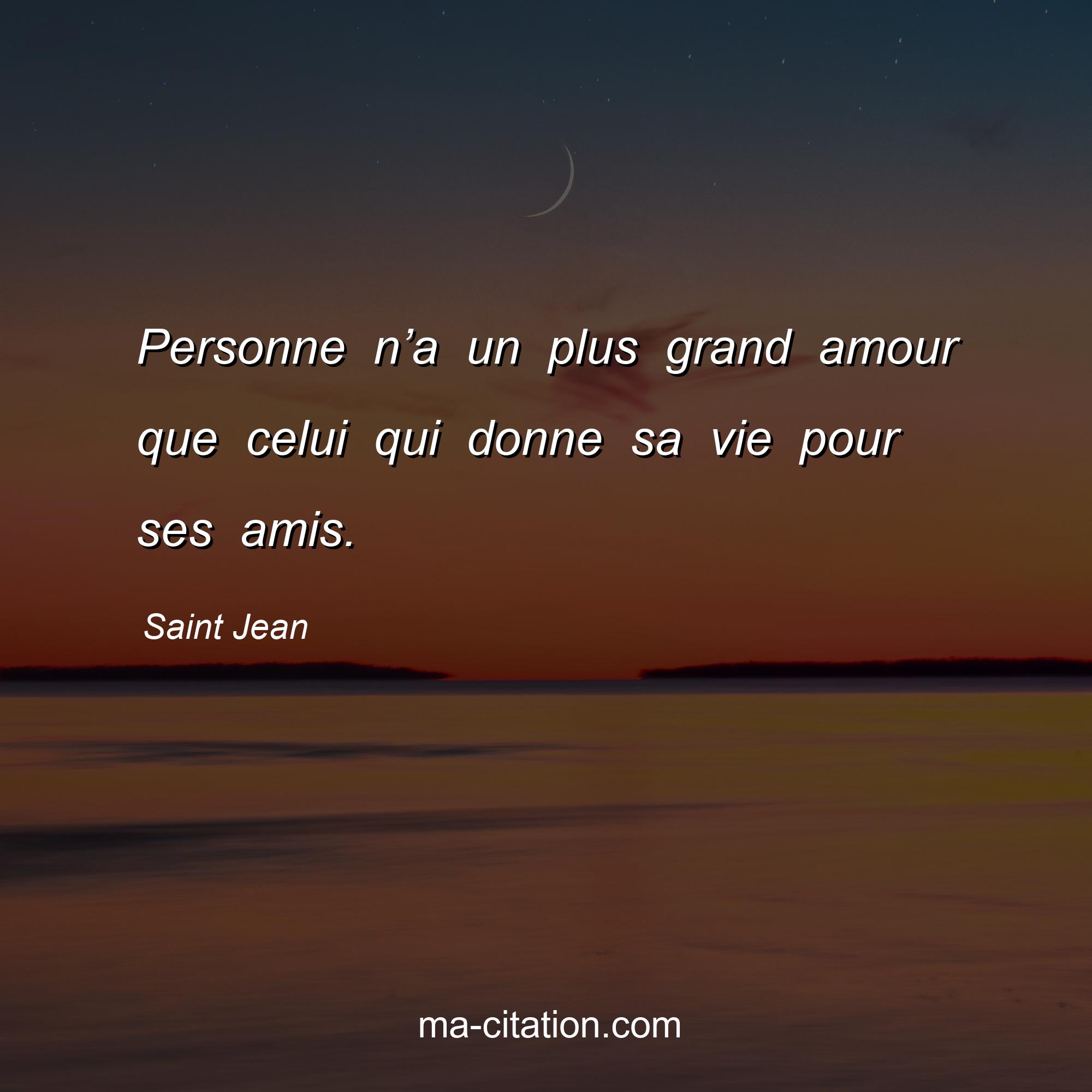 Saint Jean est l'auteur de la citation sur la vie "Personne n’a un plus grand amour que celui qui donne sa vie pour ses amis.".