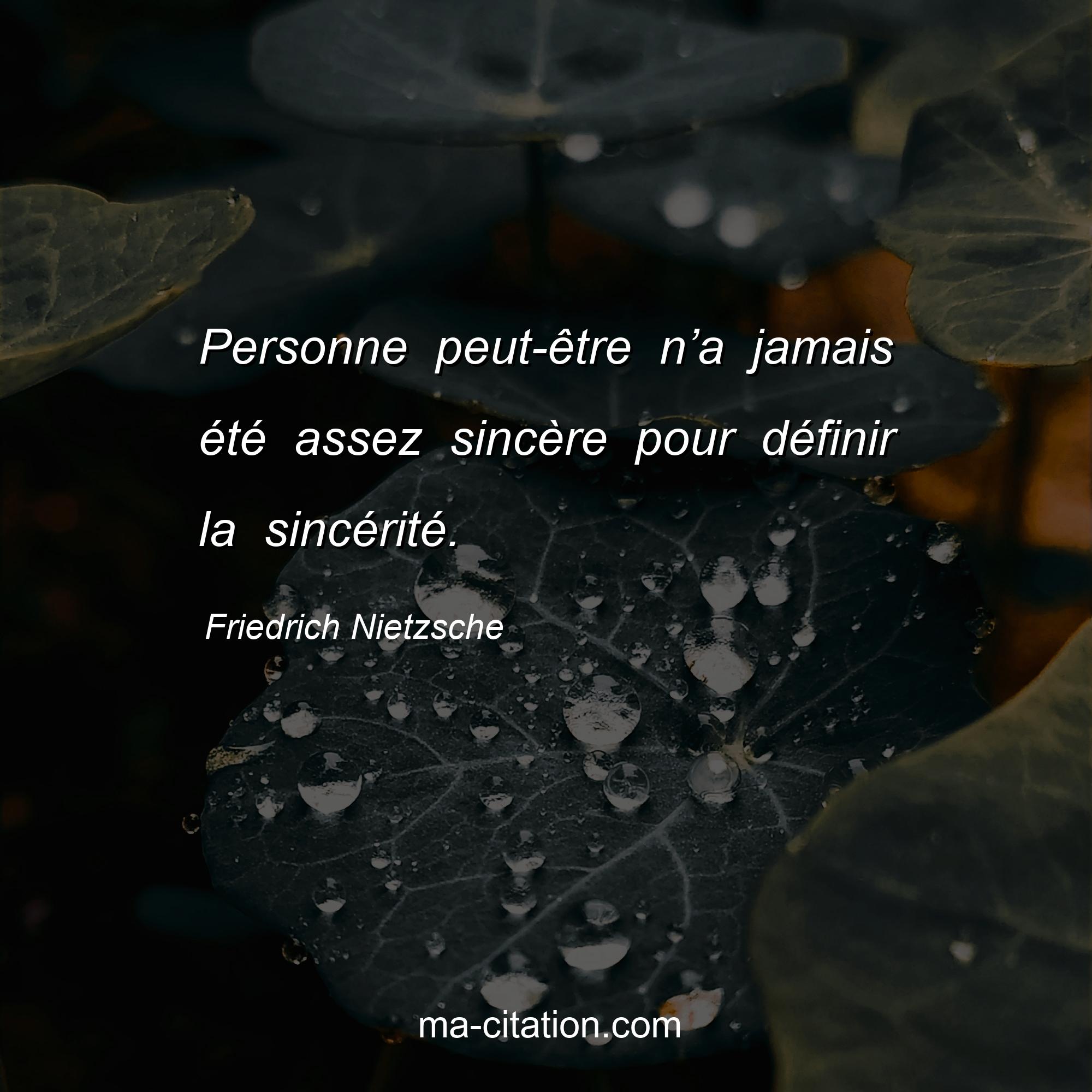 Citation sur la vie de Friedrich Nietzsche :Personne peut-être n’a jamais été assez sincère pour définir la sincérité.