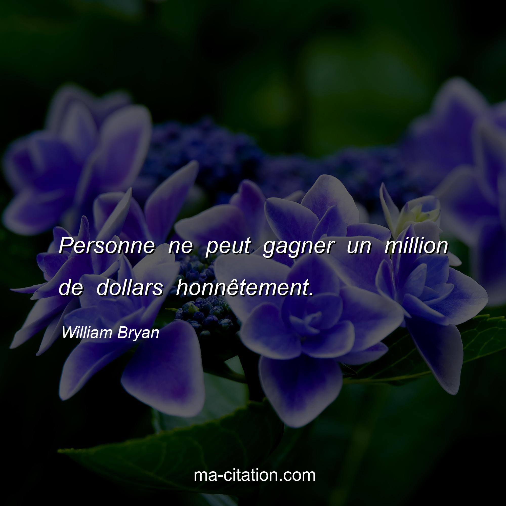 Citation sur la vie de William Bryan :Personne ne peut gagner un million de dollars honnêtement.