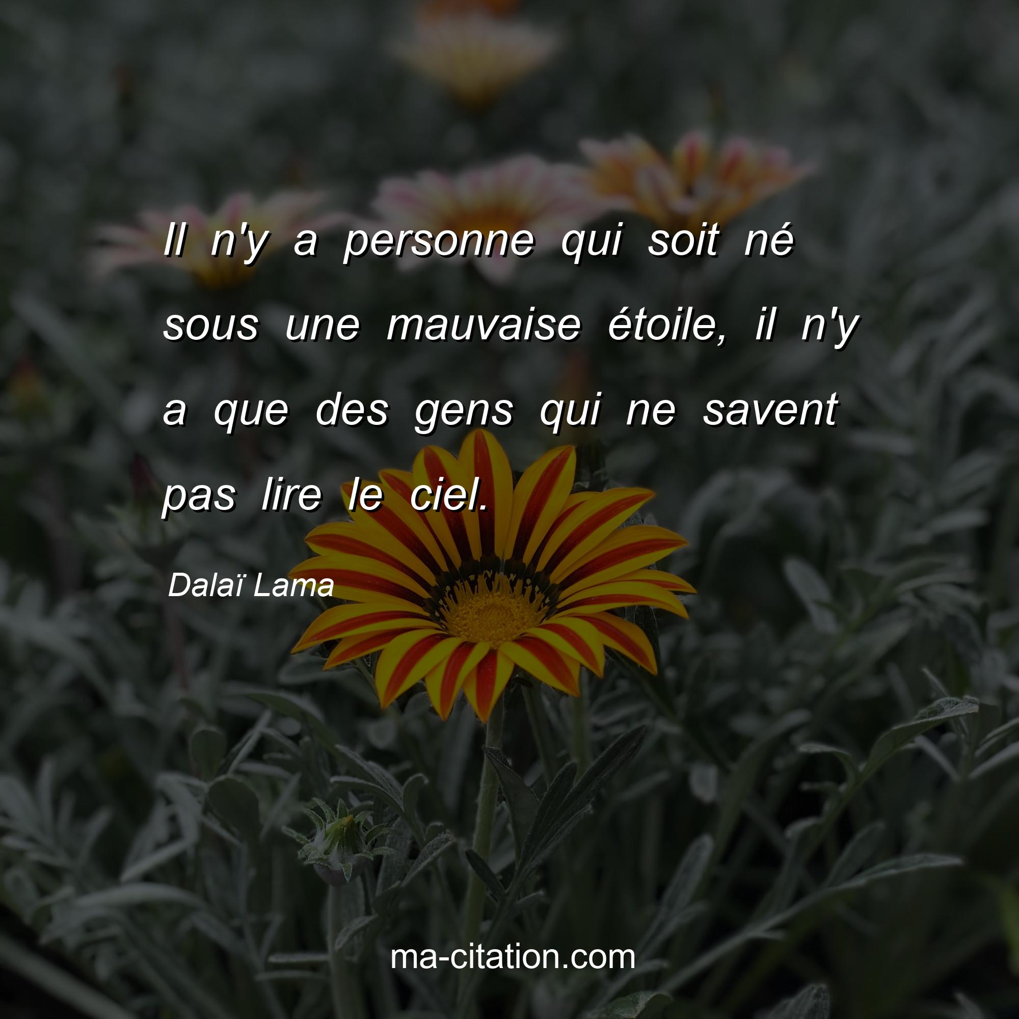 Citation sur la vie de Dalaï Lama :Il n'y a personne qui soit né sous une mauvaise étoile, il n'y a que des gens qui ne savent pas lire le ciel.