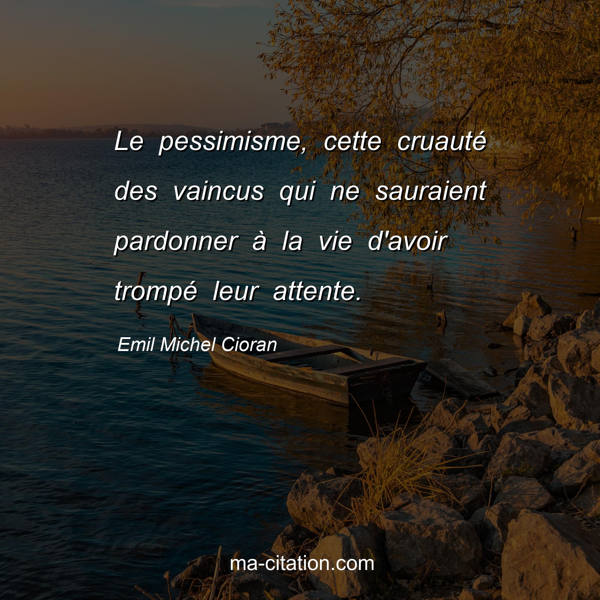 Emil Michel Cioran est l'auteur de la citation sur la vie "Le pessimisme, cette cruauté des vaincus qui ne sauraient pardonner à la vie d'avoir trompé leur attente.".