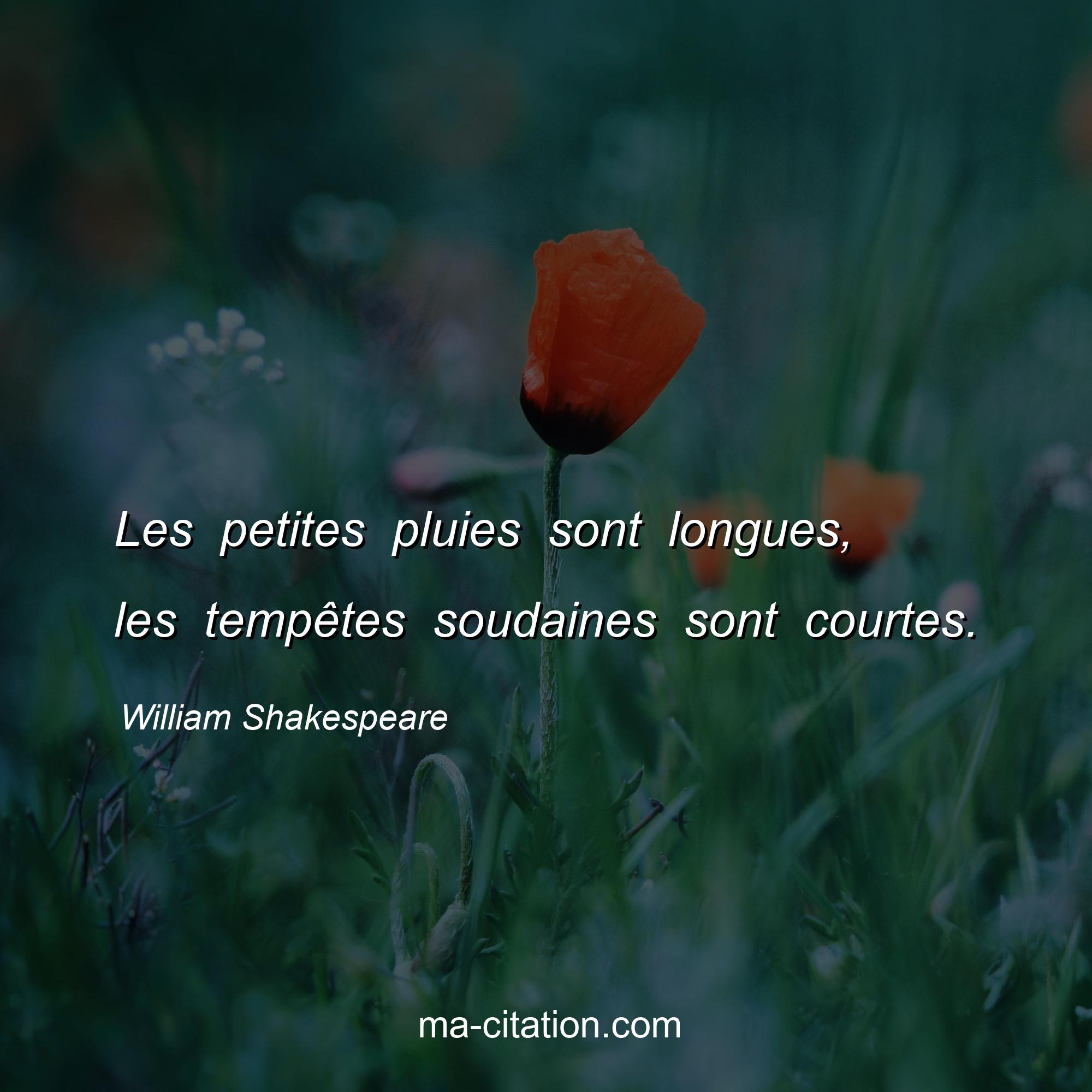 Citation sur la vie de William Shakespeare :Les petites pluies sont longues, les tempêtes soudaines sont courtes.