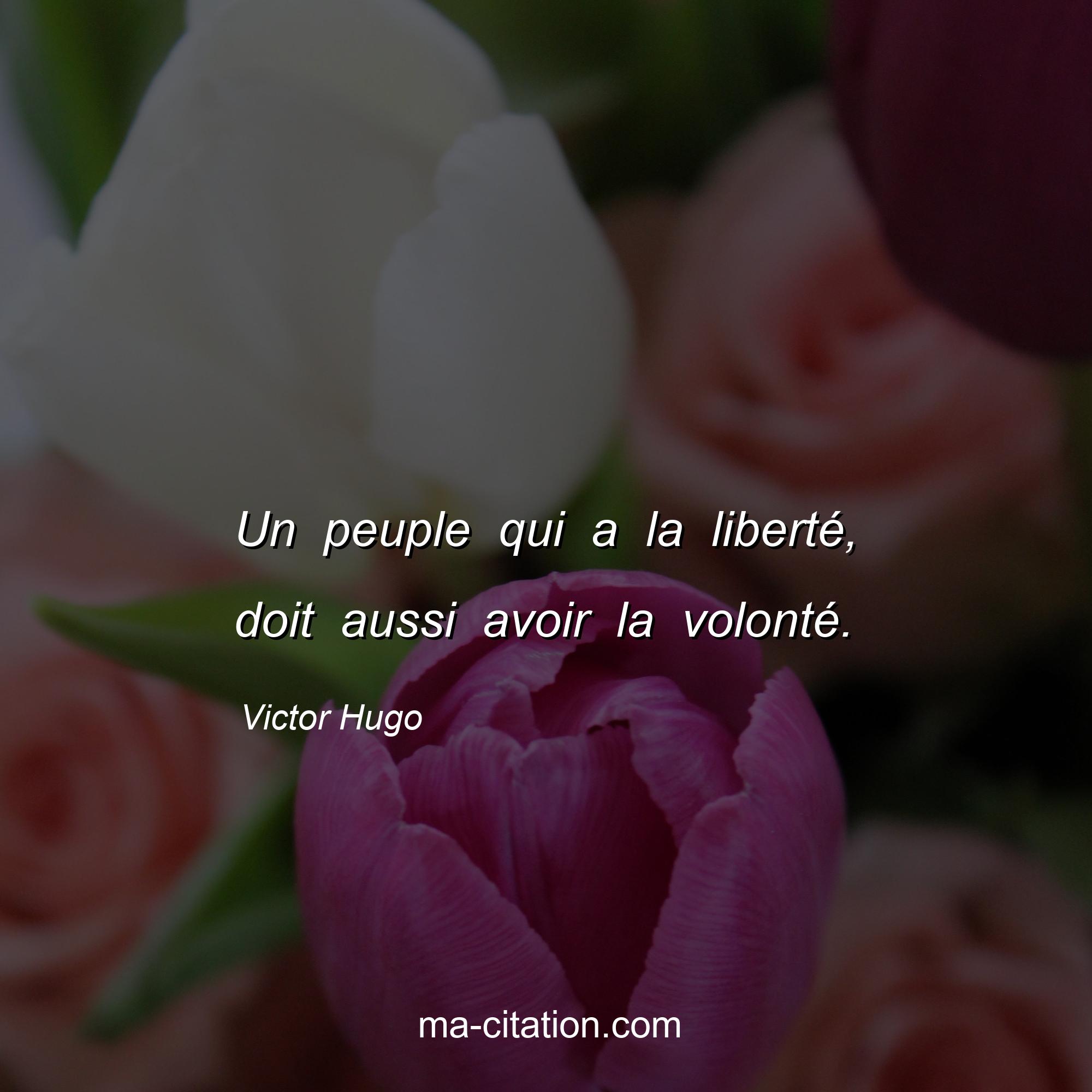 Citation sur la vie de Victor Hugo :Un peuple qui a la liberté, doit aussi avoir la volonté.
