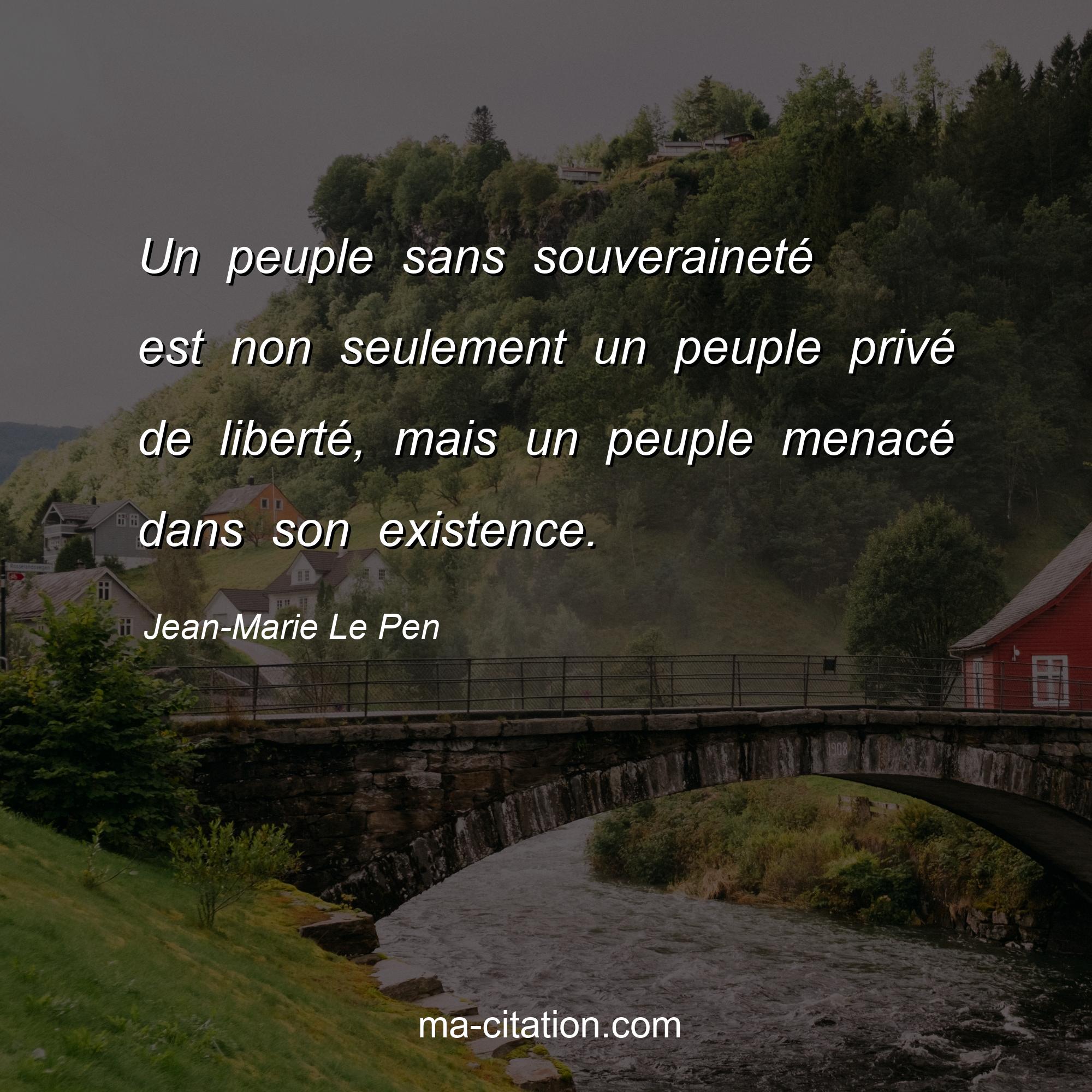 Citation sur la vie de Jean-Marie Le Pen :Un peuple sans souveraineté est non seulement un peuple privé de liberté, mais un peuple menacé dans son existence.