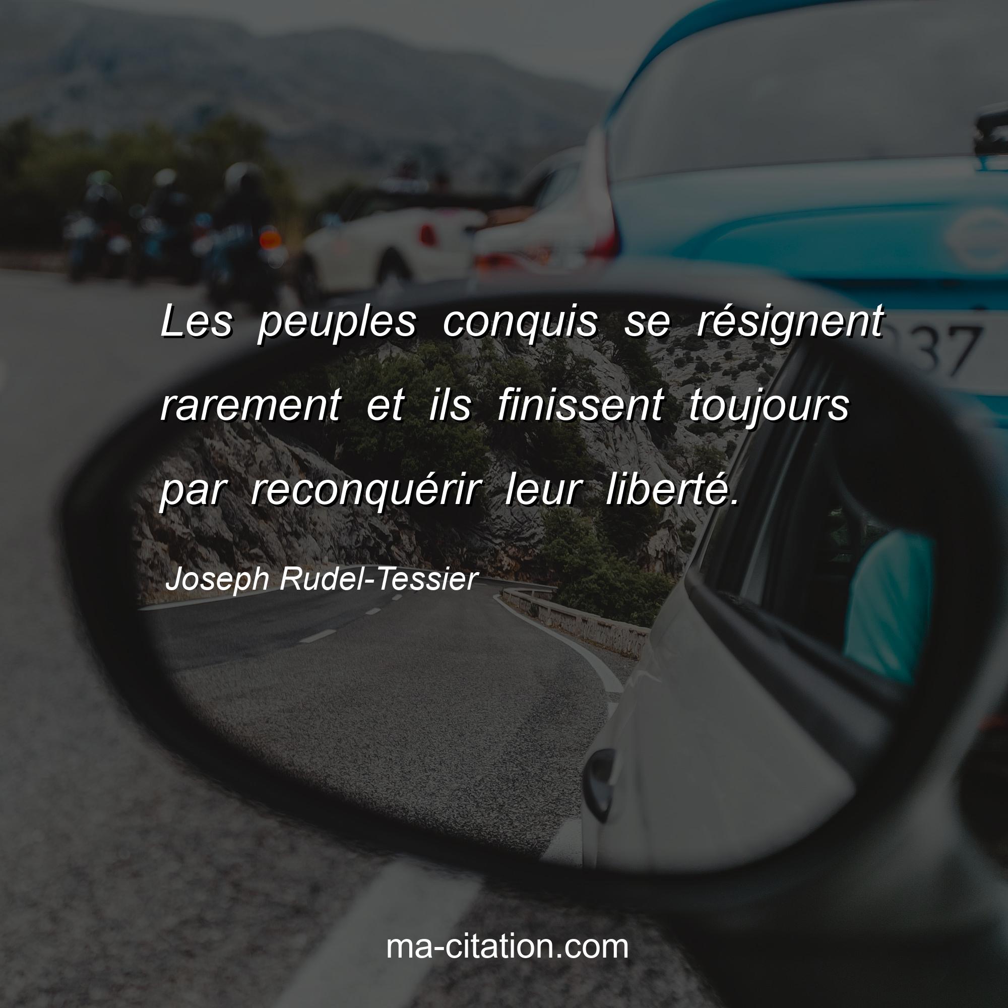 Citation sur la vie de Joseph Rudel-Tessier :Les peuples conquis se résignent rarement et ils finissent toujours par reconquérir leur liberté.