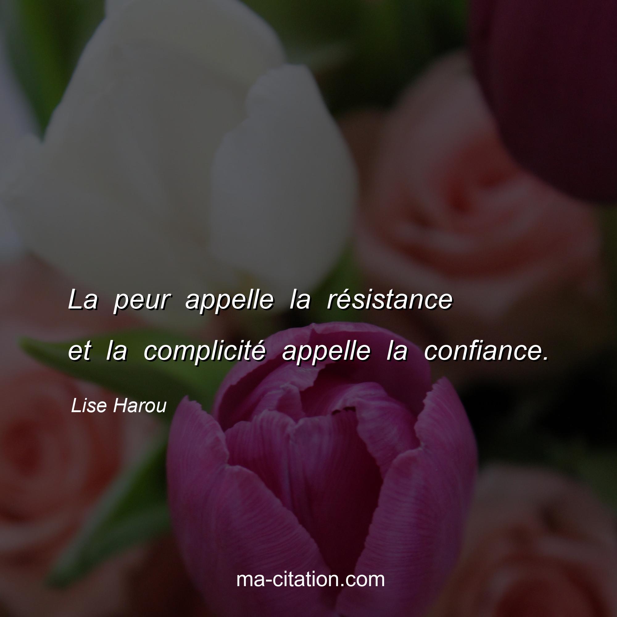 Lise Harou est l'auteur de la citation sur la vie "La peur appelle la résistance et la complicité appelle la confiance.".