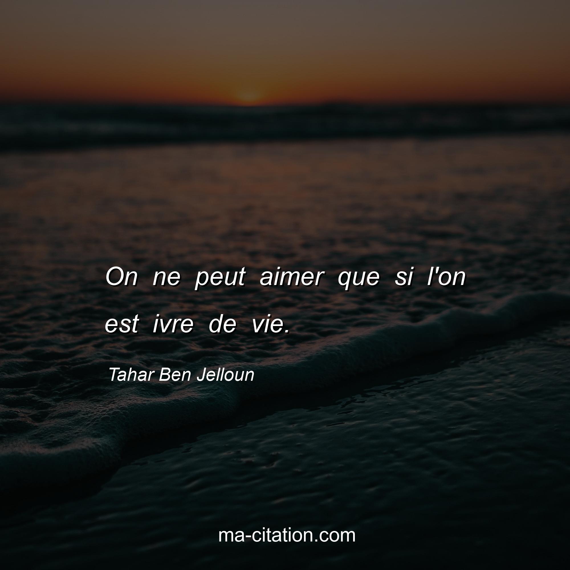 Citation sur la vie de Tahar Ben Jelloun :On ne peut aimer que si l'on est ivre de vie.