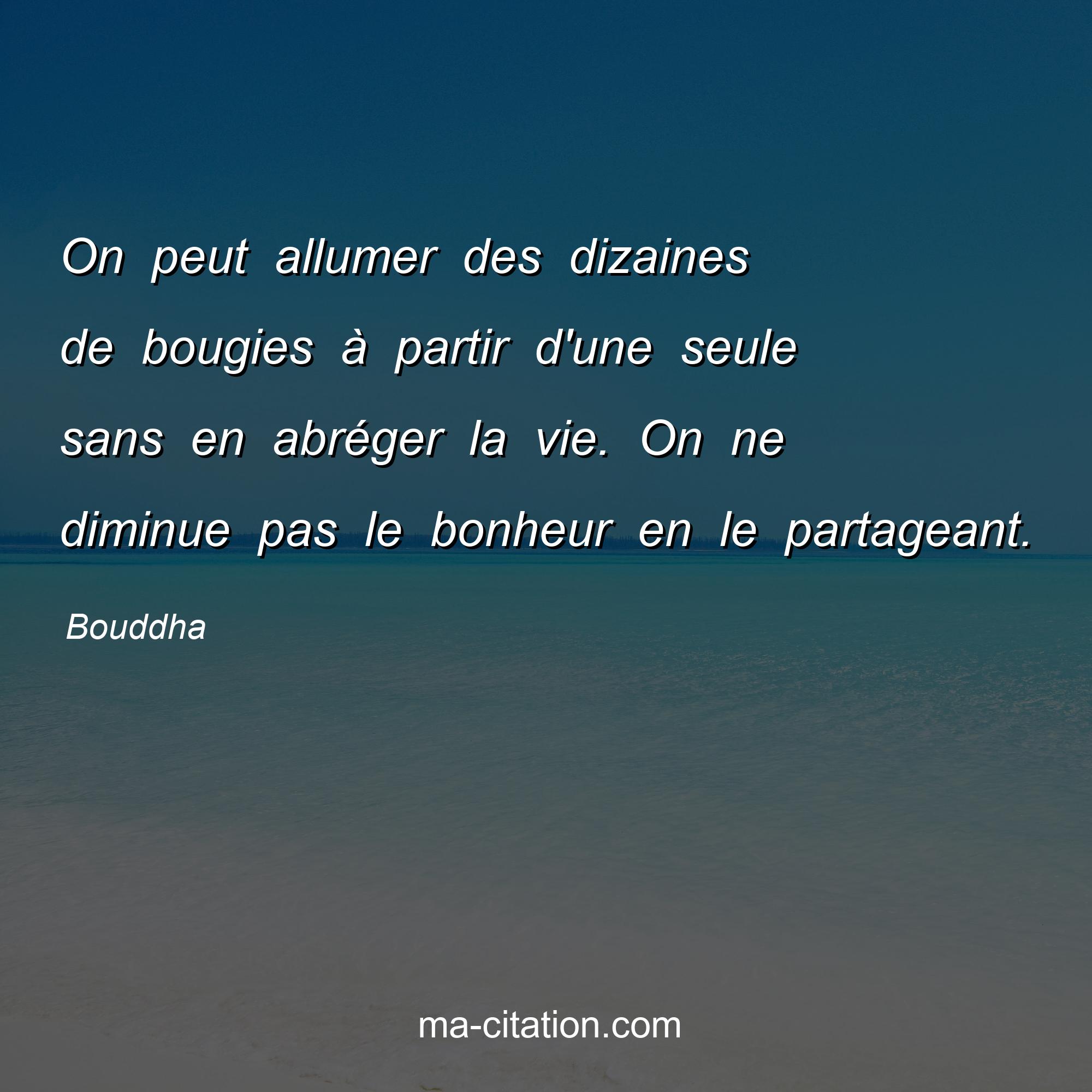 Citation sur la vie de Bouddha :On peut allumer des dizaines de bougies à partir d'une seule sans en abréger la vie. On ne diminue pas le bonheur en le partageant.