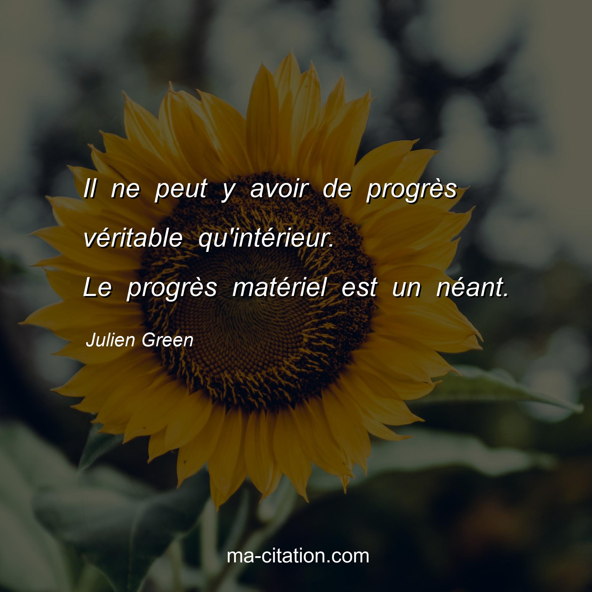 Citation sur la vie de Julien Green :Il ne peut y avoir de progrès véritable qu'intérieur. Le progrès matériel est un néant.