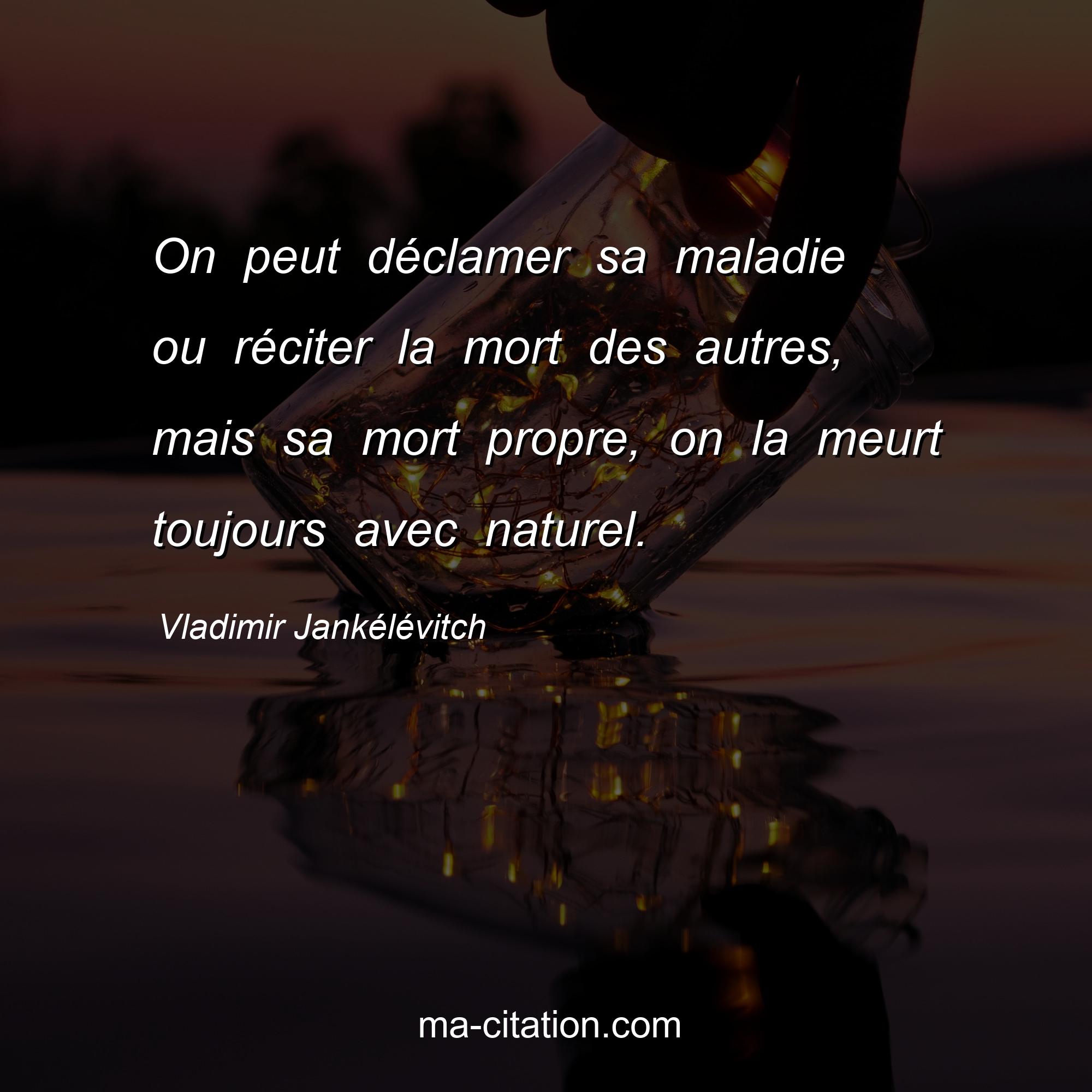 Citation sur la vie de Vladimir Jankélévitch :On peut déclamer sa maladie ou réciter la mort des autres, mais sa mort propre, on la meurt toujours avec naturel.