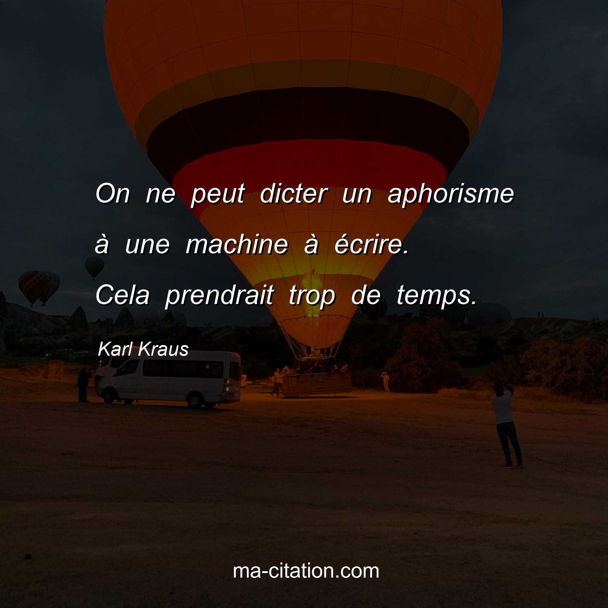 Citation sur la vie de Karl Kraus :On ne peut dicter un aphorisme à une machine à écrire. Cela prendrait trop de temps.