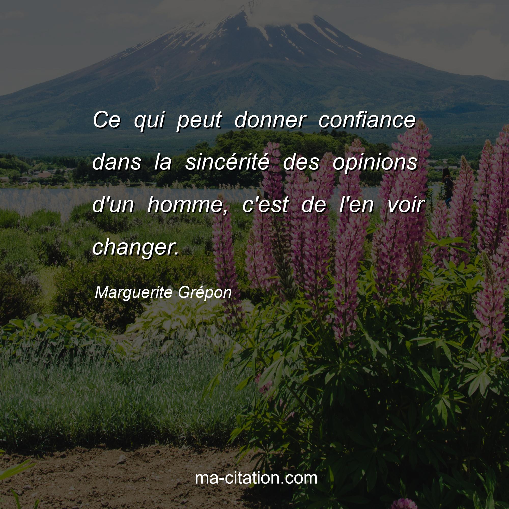 Marguerite Grépon est l'auteur de la citation sur la vie "Ce qui peut donner confiance dans la sincérité des opinions d'un homme, c'est de l'en voir changer.".
